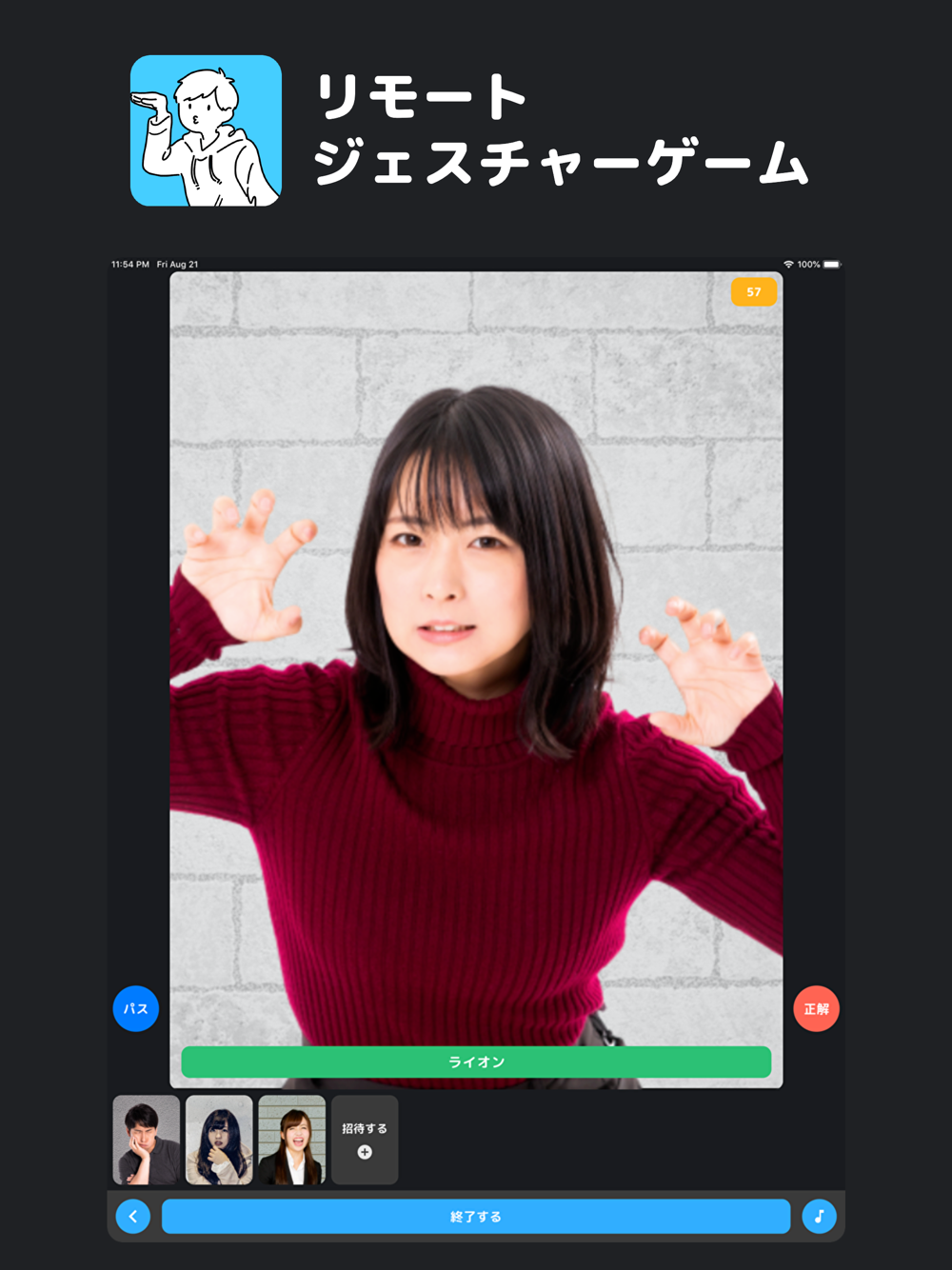 アプリに表示されたお題をみんなにジェスチャーで伝えて当てあおう!