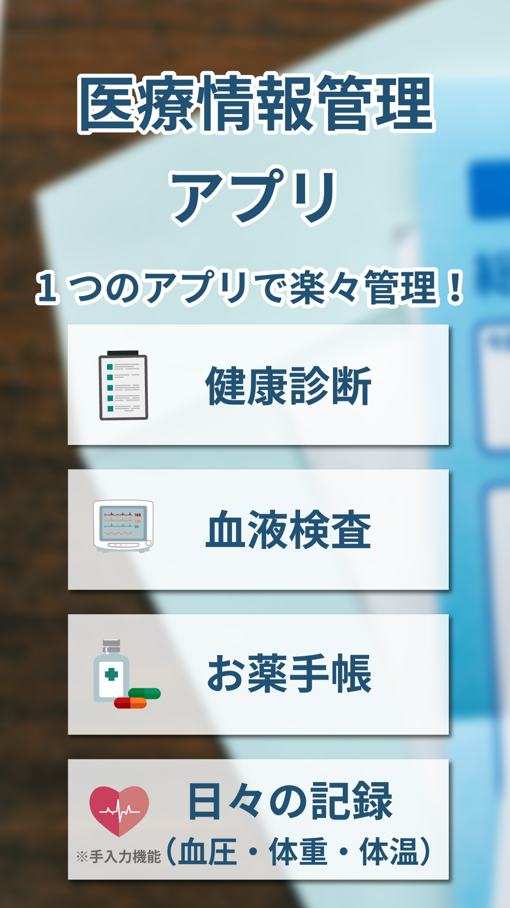 ・いろんな病院でもらった検査結果や薬の情報などを1つにまとめたい時