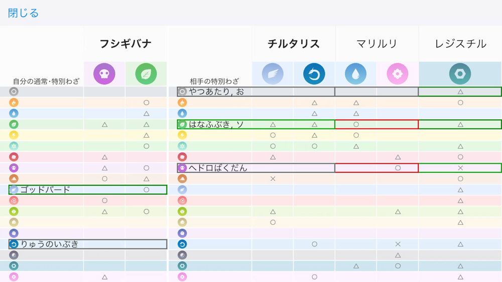 レイドバトルでレイドボスに有効なわざを確認したり、GOバトルリーグで「XXXが出てきた時、どのポケモンに交代すれば有利だったのか?」など復習できます。
