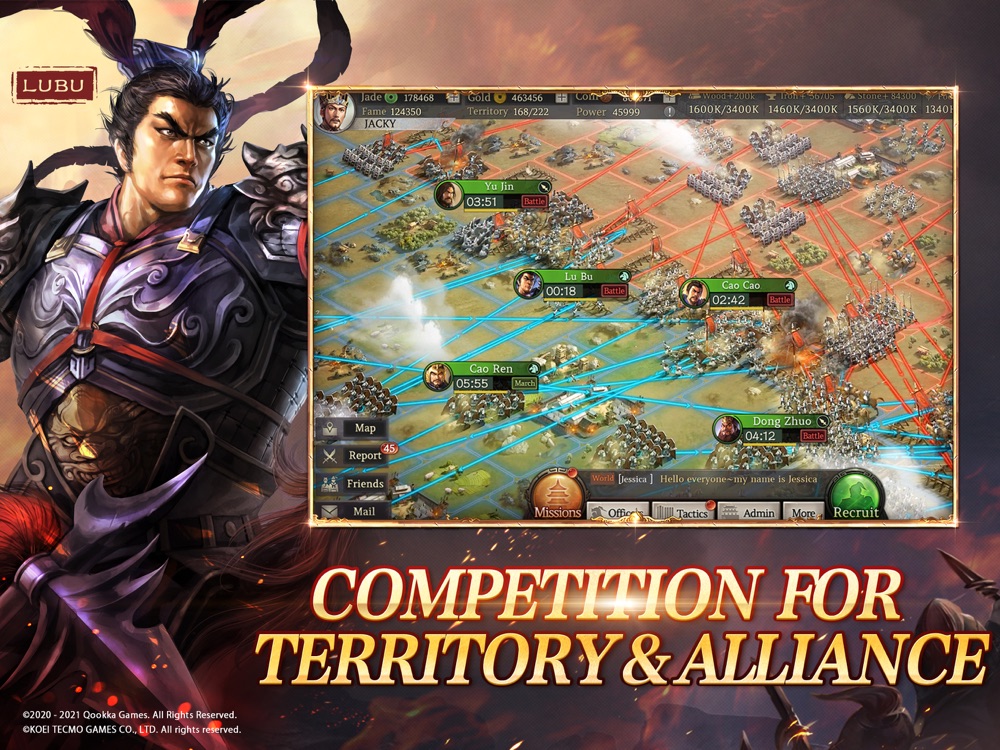 In this game, you can join a 200-player Alliance and meet like-minded friends. Together, you will work towards the same goal: occupy Luoyang and unite the nine provinces. The bond shared between brothers in arms is truly amazing. Other than taking the enemies head-on, players may also engage in diplomacy and work with various factions, experiencing the ebbs and flows of the real three kingdoms in history as well as large-scale epic battles between Legions. Last but not least, don’t forget that there might be a spy in your Alliance!