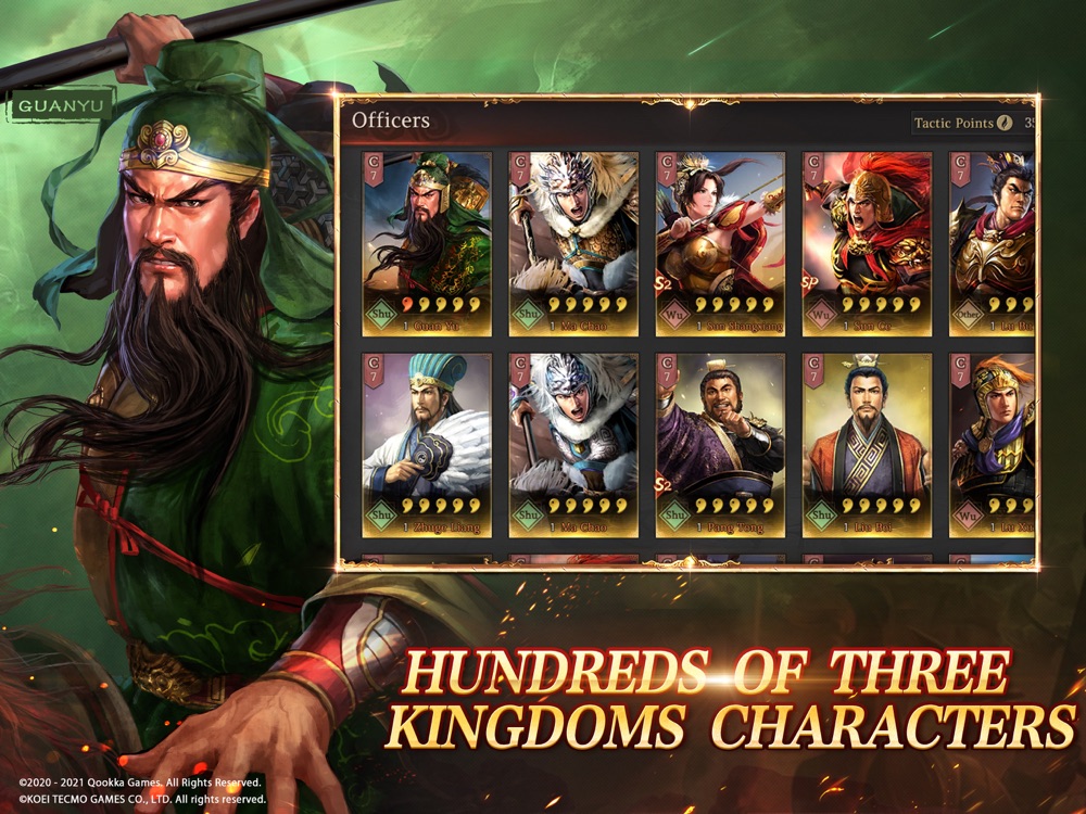 You will become a hero in the Three Kingdoms era, appoint courtiers, and seek out talented minds. More than a hundred military generals from the original Romance of the Three Kingdoms franchise are waiting for you to recruit them. Additionally, there are countless powerful strategies such as Intimidating Roar and Sheer Bravery which draw inspiration from historical events of the Three Kingdoms. Don’t forget that this game has five different Troop Types. Use the strength of your Troop Type to exploit your enemy’s weakness and build your lineup accordingly to outsmart your opponent and win battles even when you’re outnumbered.