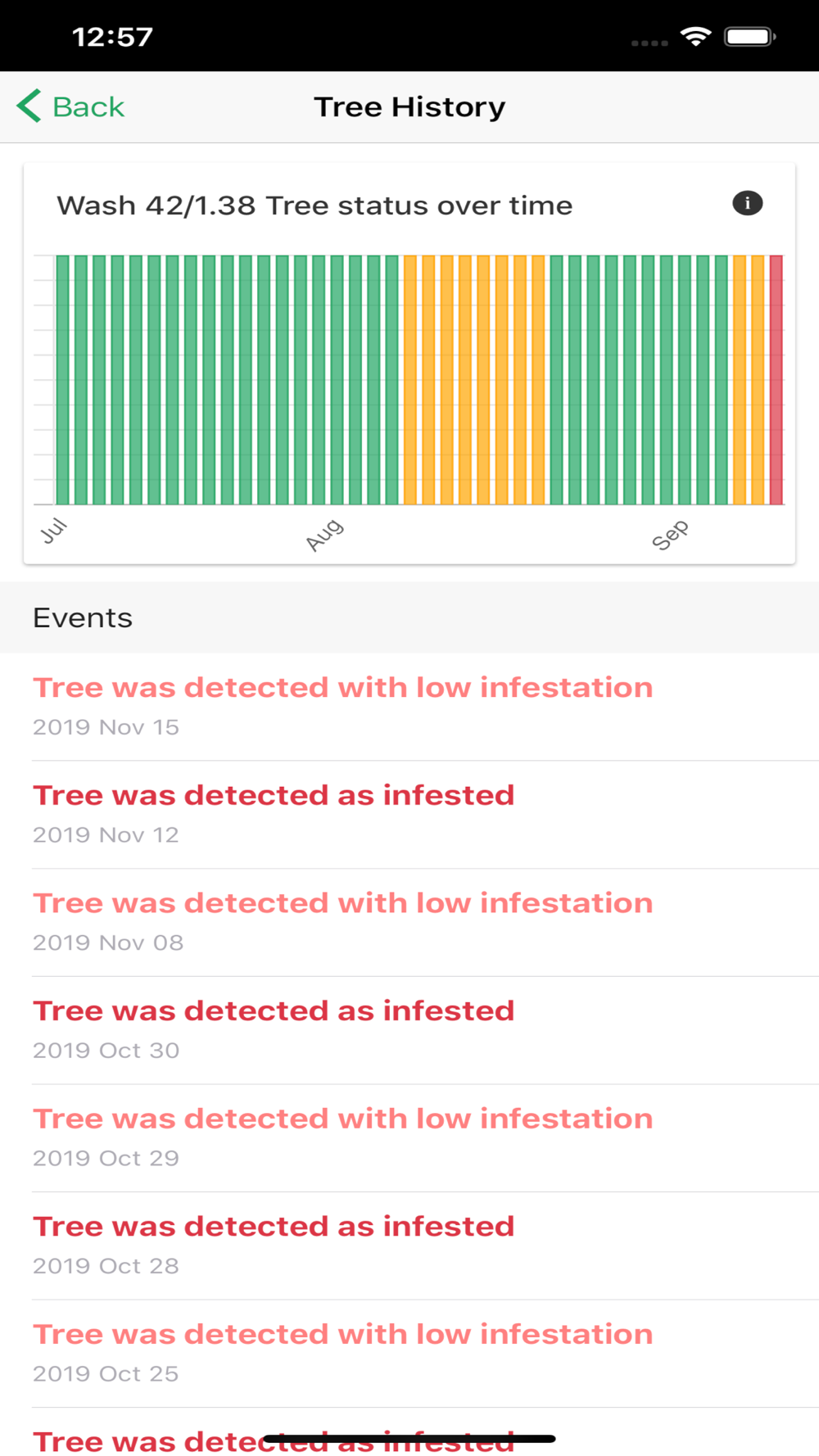 - The ability to mark whether a tree has been sprayed/treated to produce a unique tracking program of the effectiveness of the spraying over time.