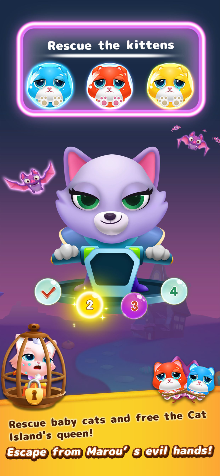 - Use the booster to over come faster. Our magic animal friends will support you to rescue kittens