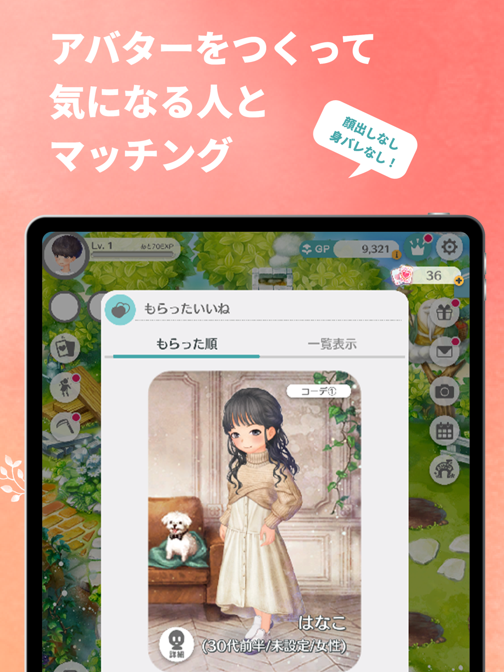 アバターを見て、気になる人に「いいね」を送ろう。