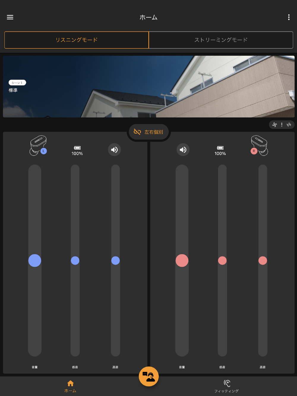 アプリと接続したメディカルリスニングプラグの音量やシーンなどの各種設定を変えることができます。