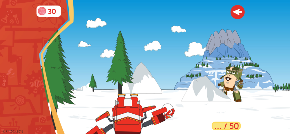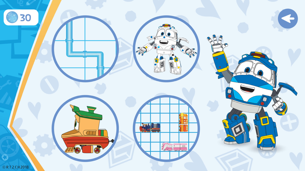 Duke, Mos and Dos have made a big mess again. This time, they have launched a rocket with wind and water energy that has caused a great snowstorm. If we don’t do something immediately, Railworld is in danger. And only the Robot Trains can save it launching a rocket which contains a bit of 4 energies ―Water, Wind, Fire and Light― against the snowstorm.