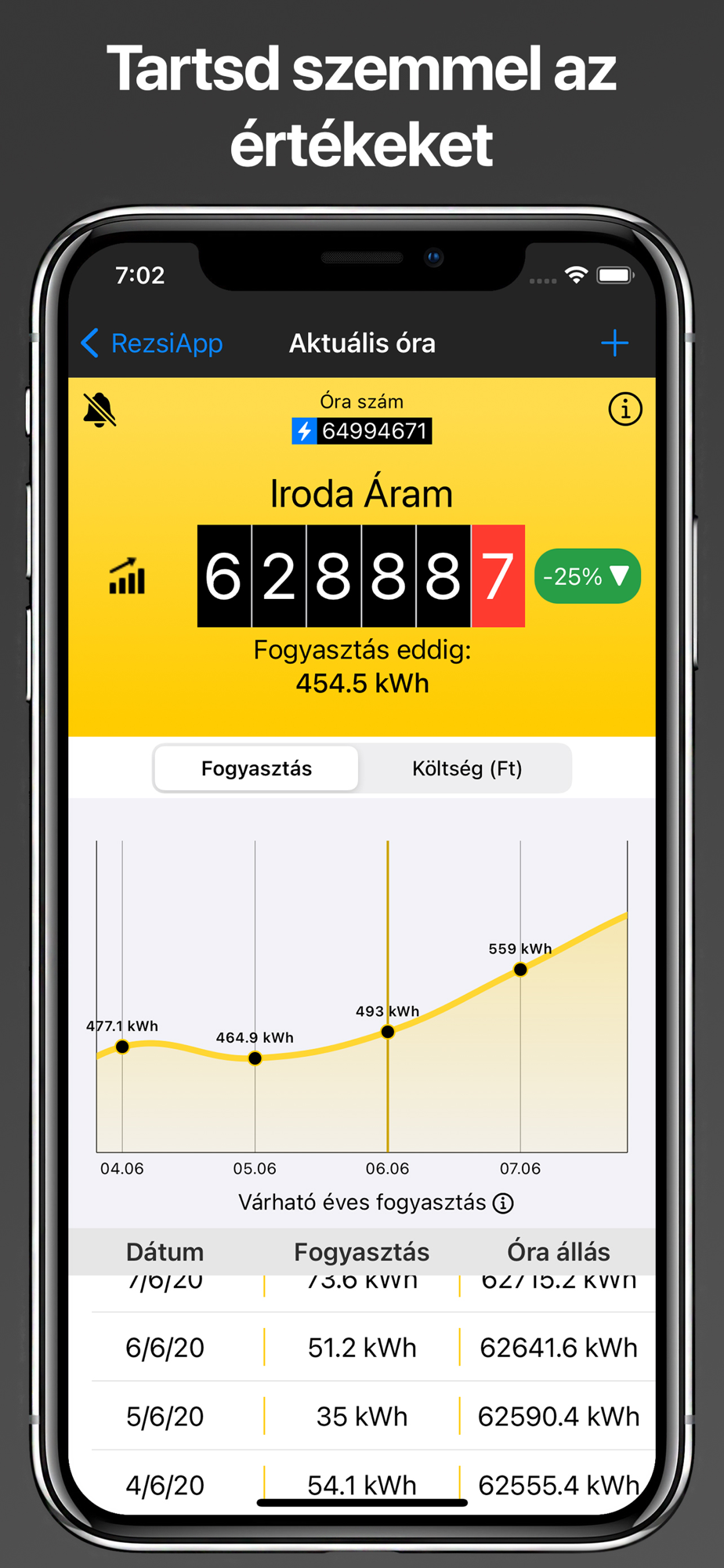 - Statisztikai rálátást biztosít a rezsiköltség folyamataidra