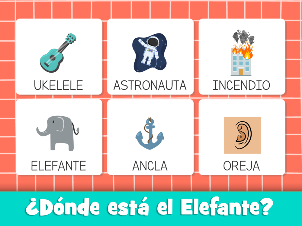 - ¿Qué palabra empieza por A? Se muestran diferentes imágenes y hay que elegir la que empiece por la vocal que se está mostrando.