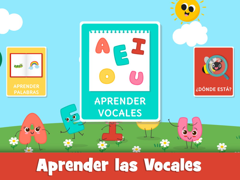 9 juegos educativos infantiles para niños de 3, 4 y 5 años en español. Con nuestra aplicación, los niños aprenderán las 5 vocales de abecedario en español de una forma divertida y cómo se escriben tanto en mayúsculas como en minúsculas. También aprenderán nuevo vocabulario, con más de 40 palabras en las que tendrán que prestar atención a la primera letra, ¿por qué letra empieza abeja?