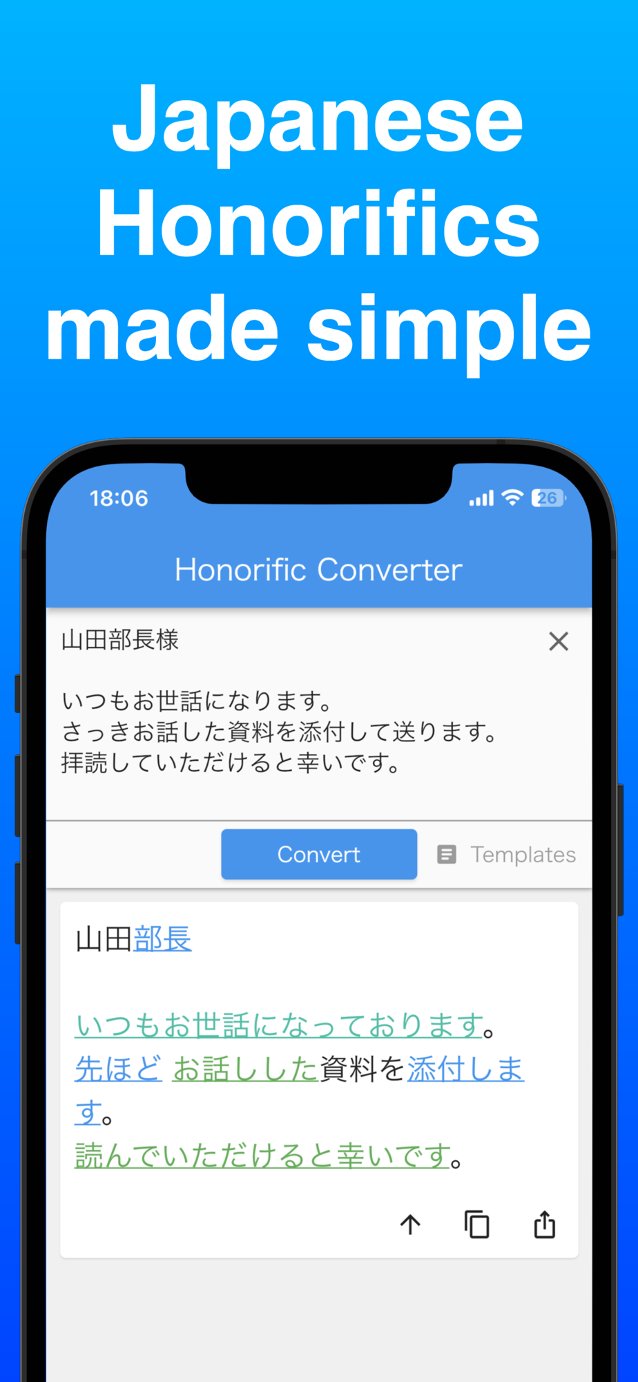 Honorific Converter can convert or generation to the next five honorifics to easy: