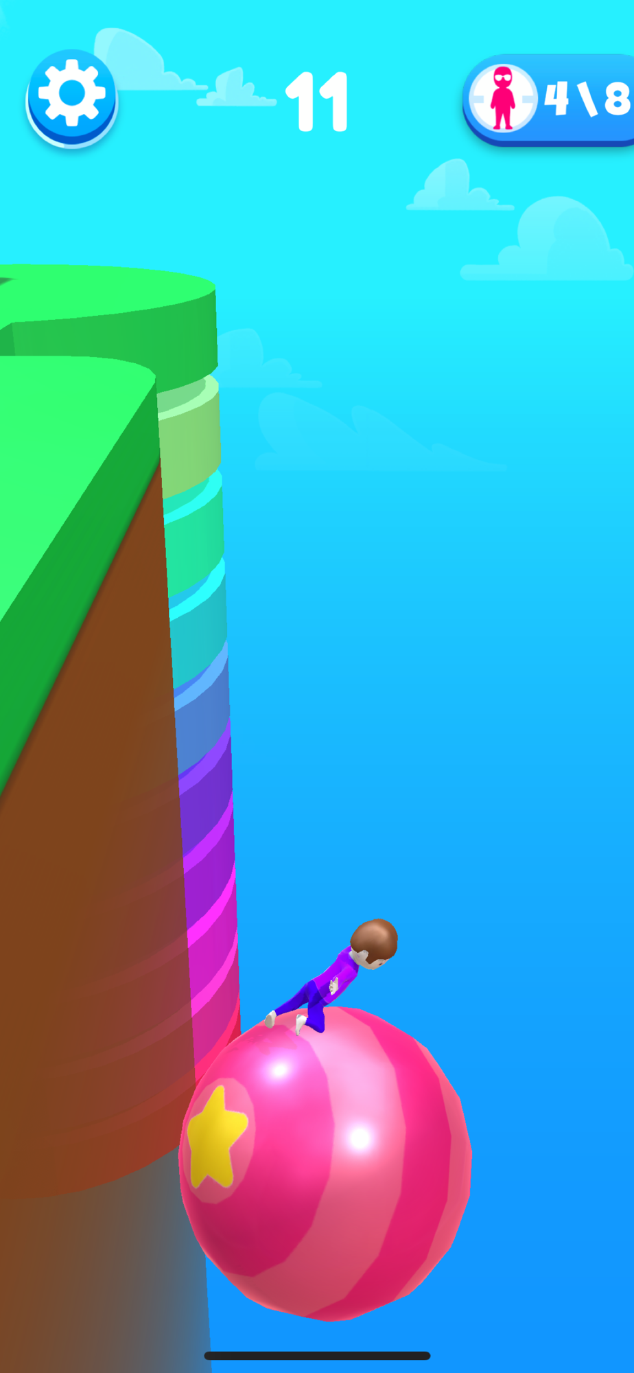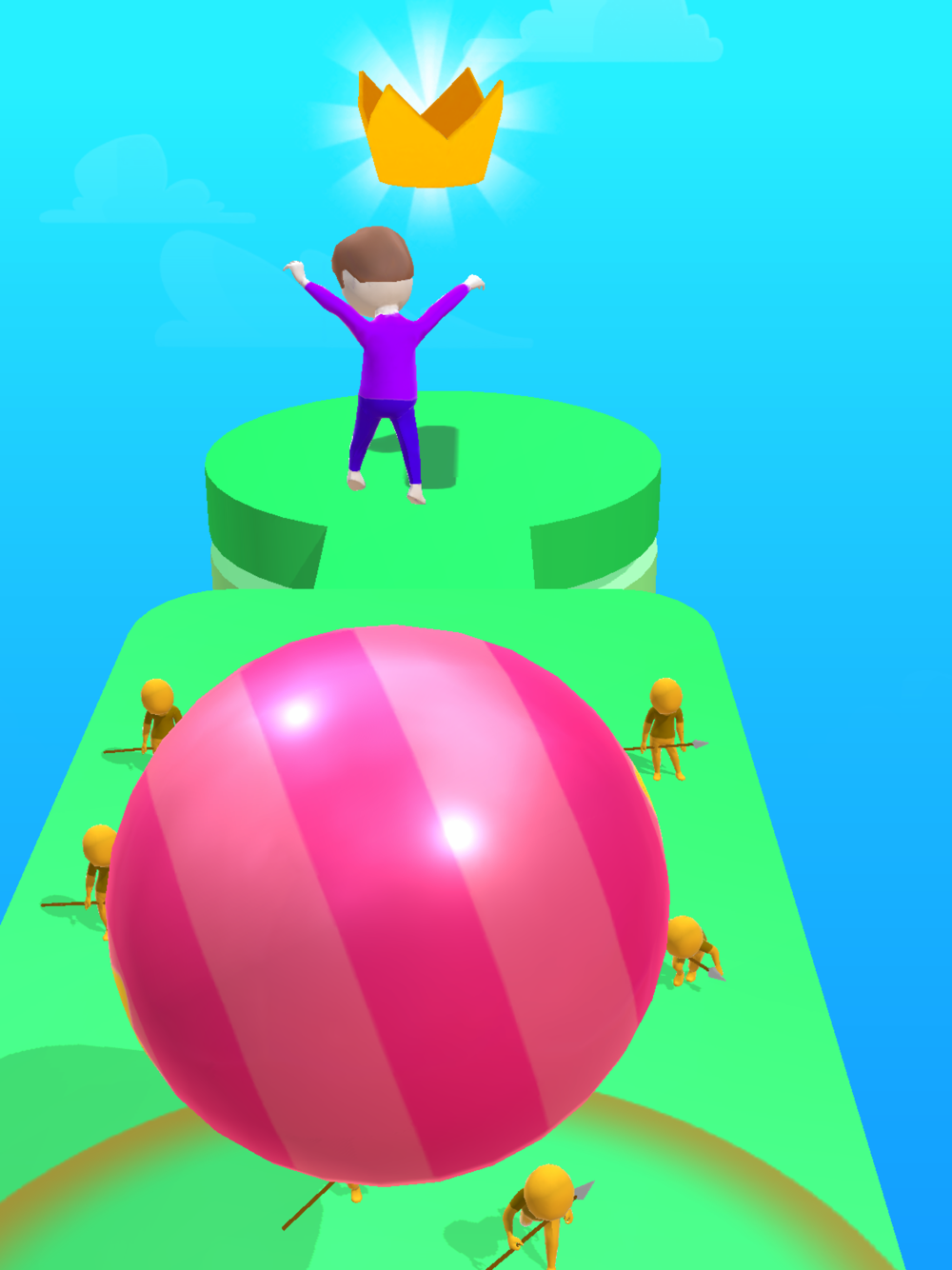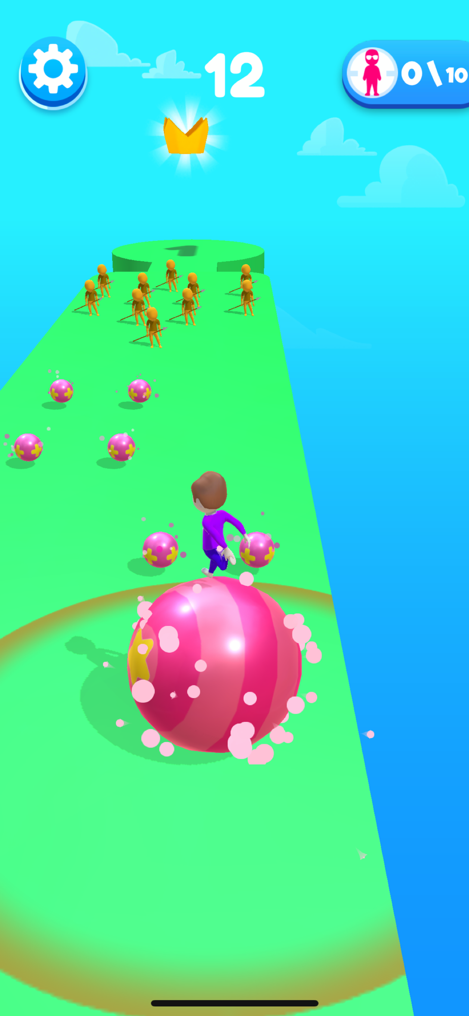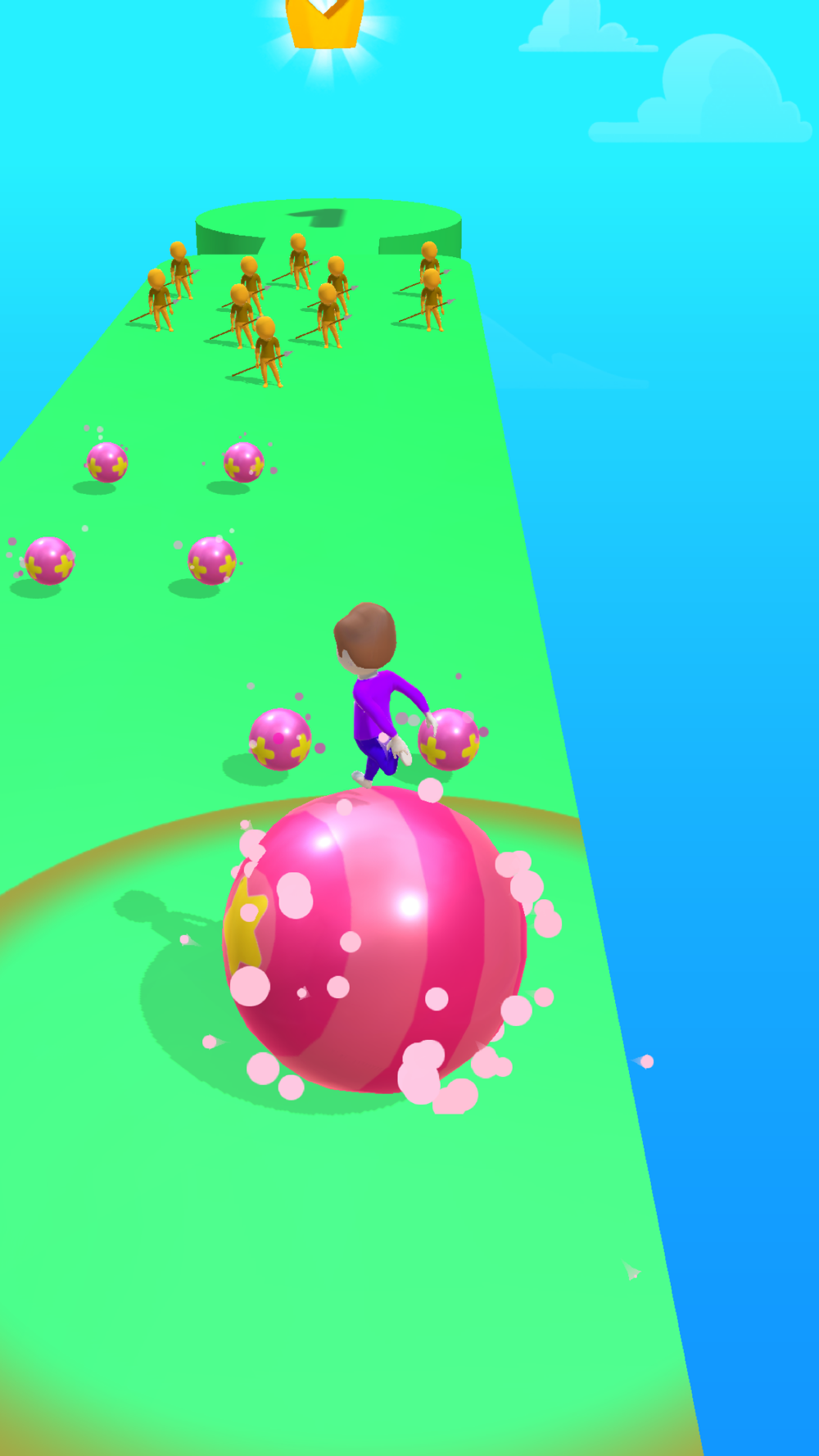 Roll the ball and squash the enemies. Watch out not to fall out off the platform.