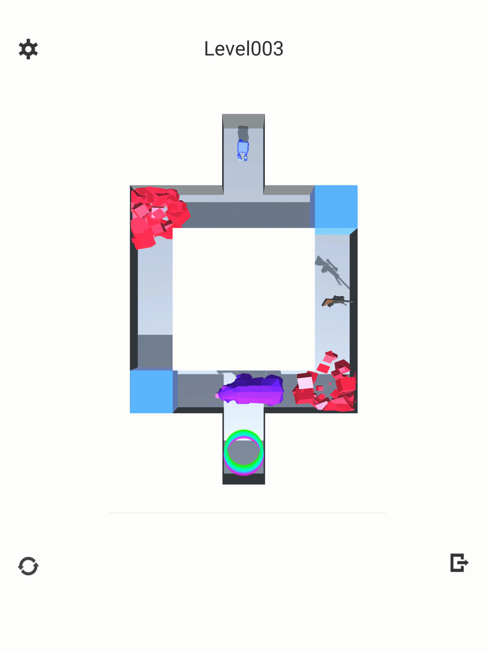 Break the blocks and guide the character to the goal.