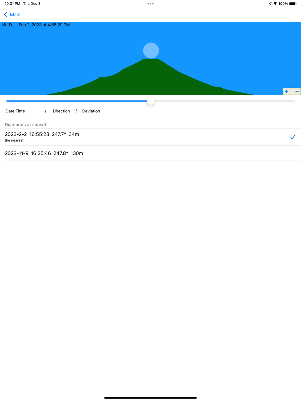 As with "Yamaotaku for Mac (Yamac)", the curvature of the earth and atmospheric refraction are taken into consideration, and highly accurate results can be obtained.
