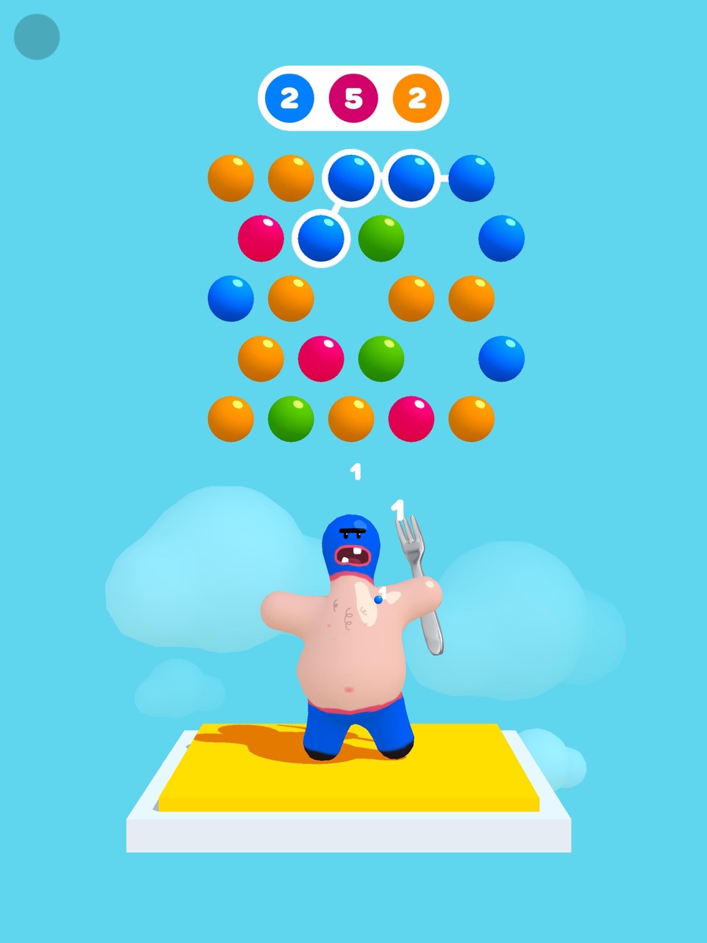 Connect 2 or more colors in order to feed Jelly O Boy.
