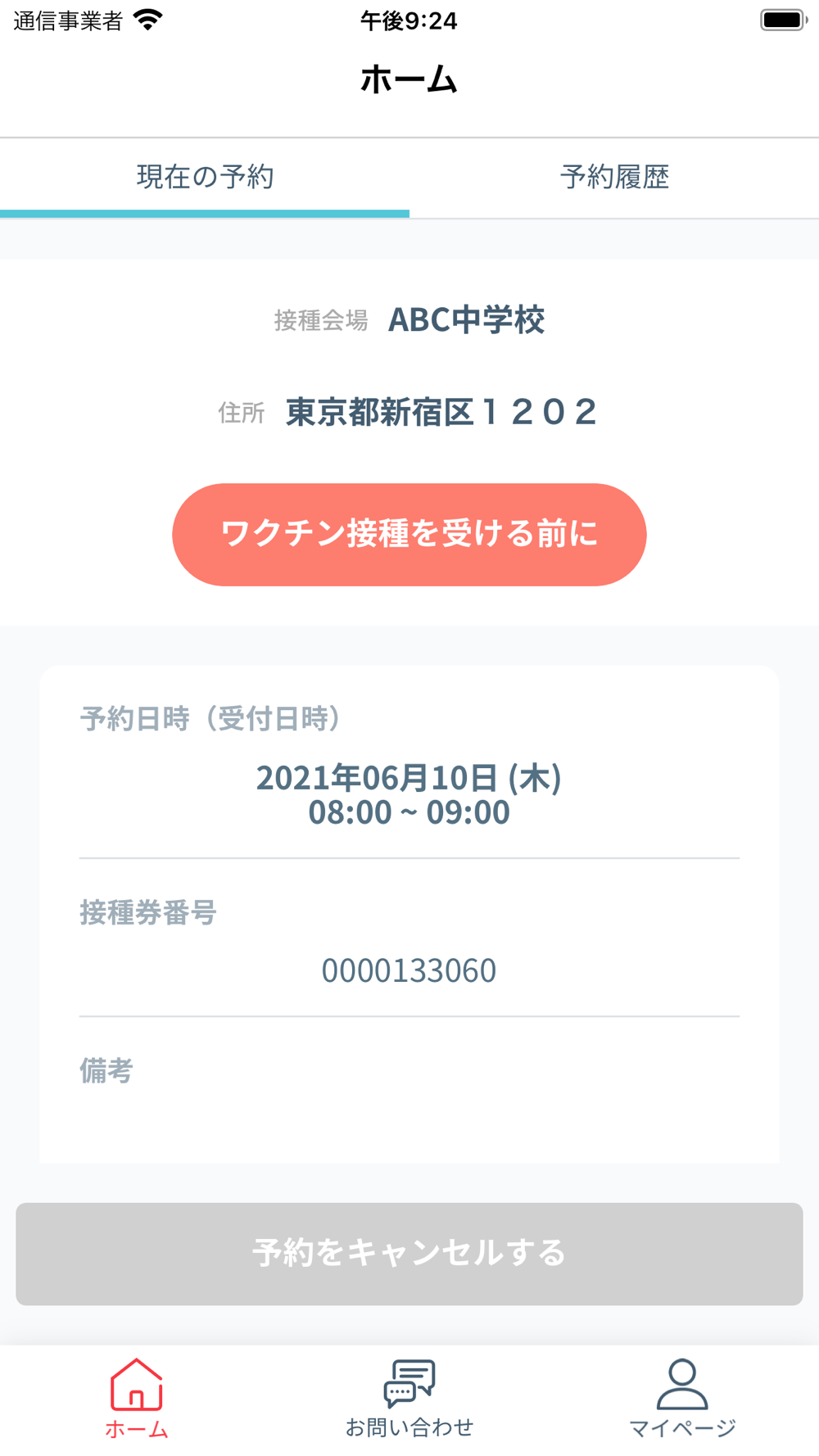 接種を予約すると、接種日の数日前での通知、当日の通知を受けることができます。