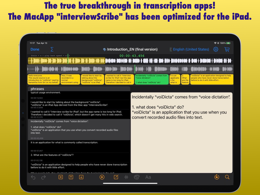 The concept of the Mac app "interviewScribe" has been optimized for the iPad.