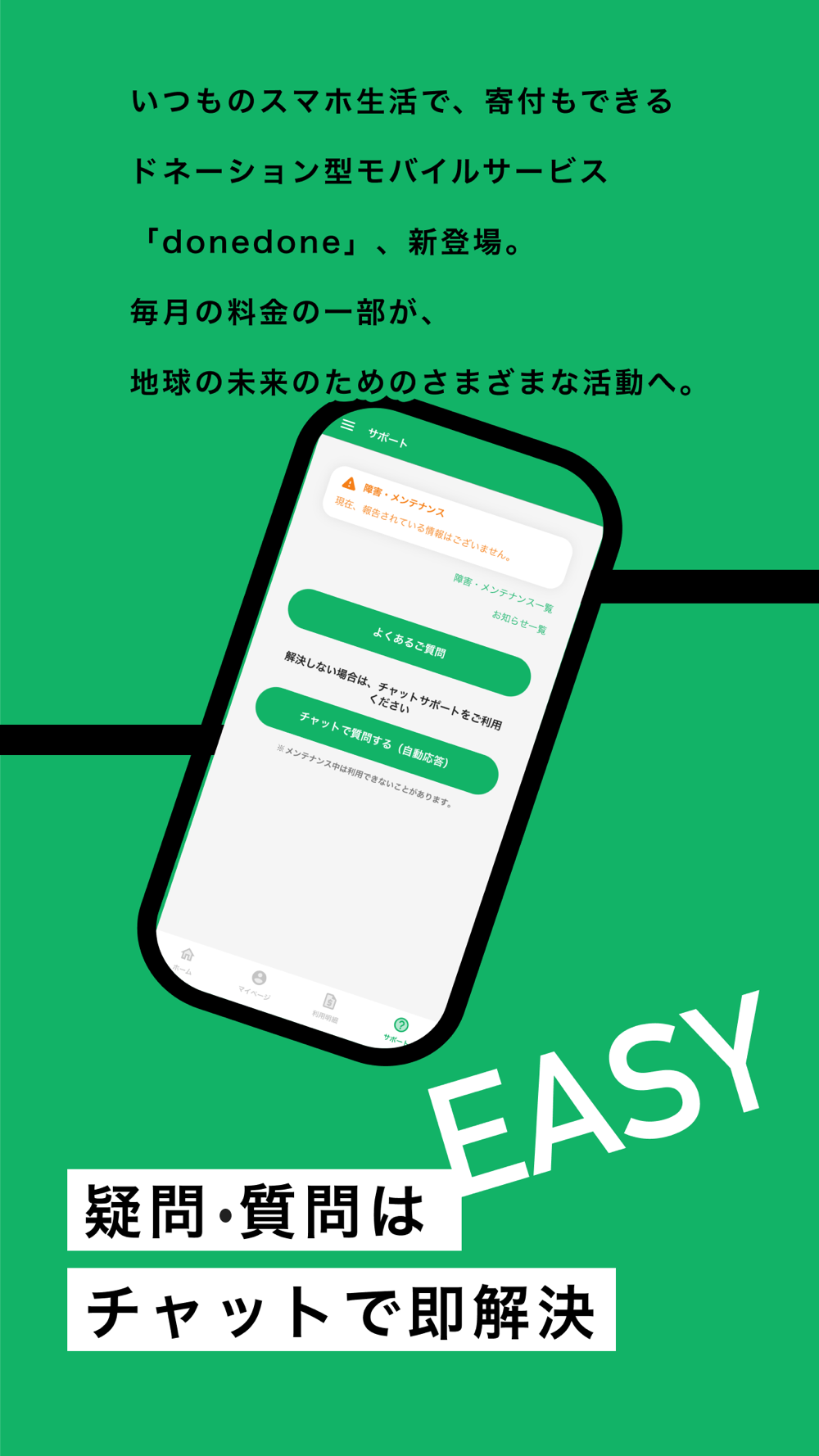 donedone会員のお客さまの、より良い未来創りに向けた社会貢献活動をサポートしたり、ご利用状況確認や各種手続きができるアプリです。