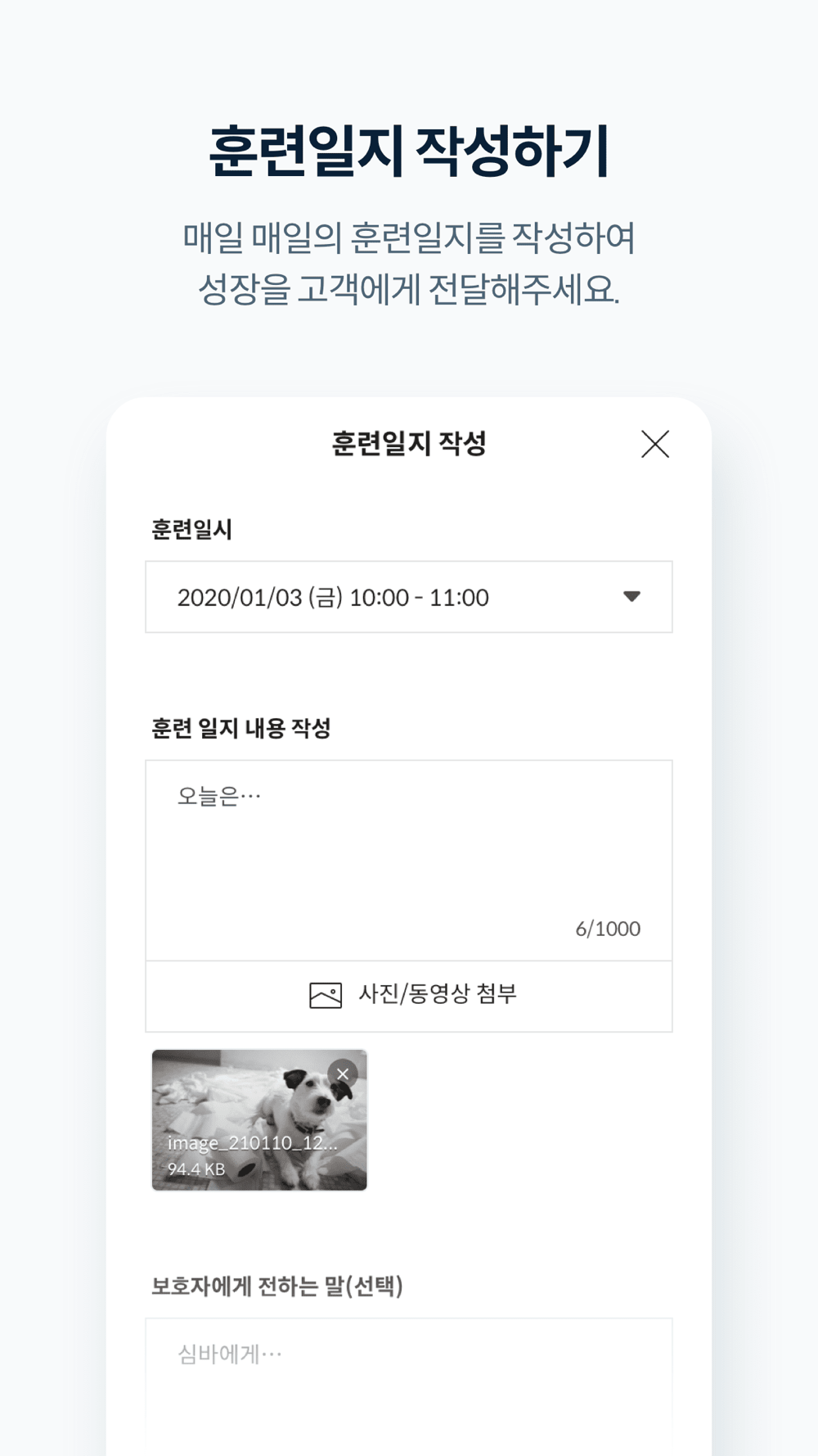 훈련사를 한번 만나서 교육받는 것도 중요하지만, 교육 받고 훈련일지로 기록을 남기는 것도 펫 교육에 매우 효율적 입니다.
