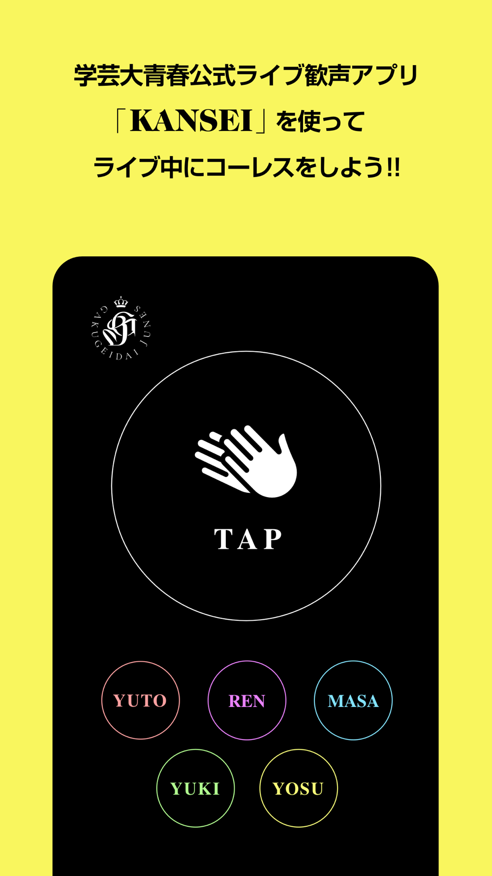 学芸大青春の5人とじゅねフレ専用の公式アプリ。感染症対策のため発声禁止となるジュネスのライブで、アプリを使用し5人に歓声を届けることができます。