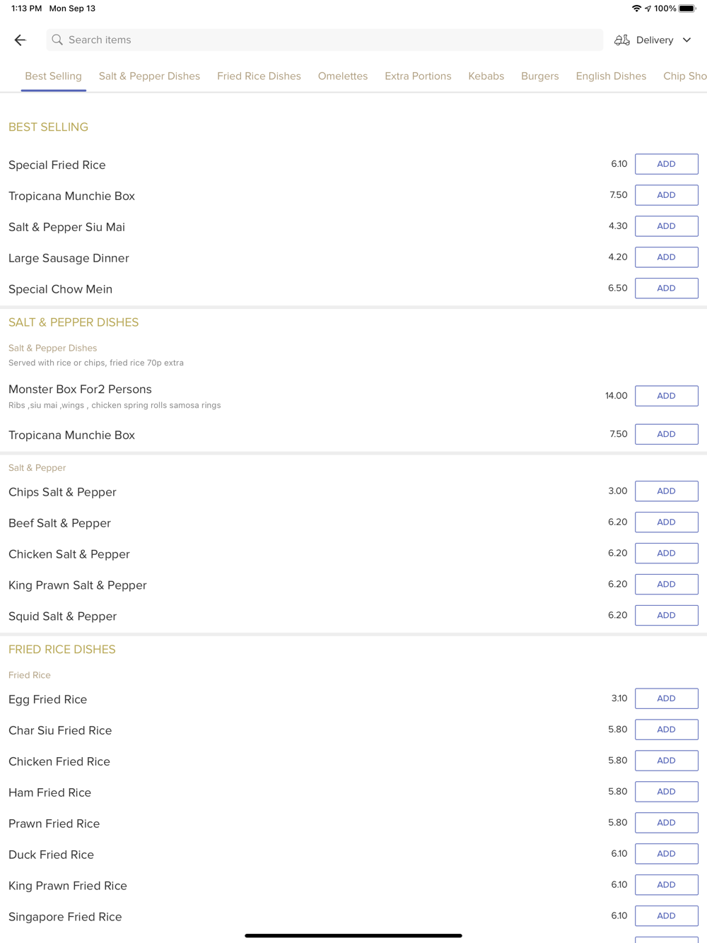Order food online from one of the finest takeaways in town. Here at Tropicana Fish Bar in Liverpool, and are proud to serve the surrounding area. We serve a variety of food such as soups, noodles, beef dishes, fried rice, curry dishes and more.