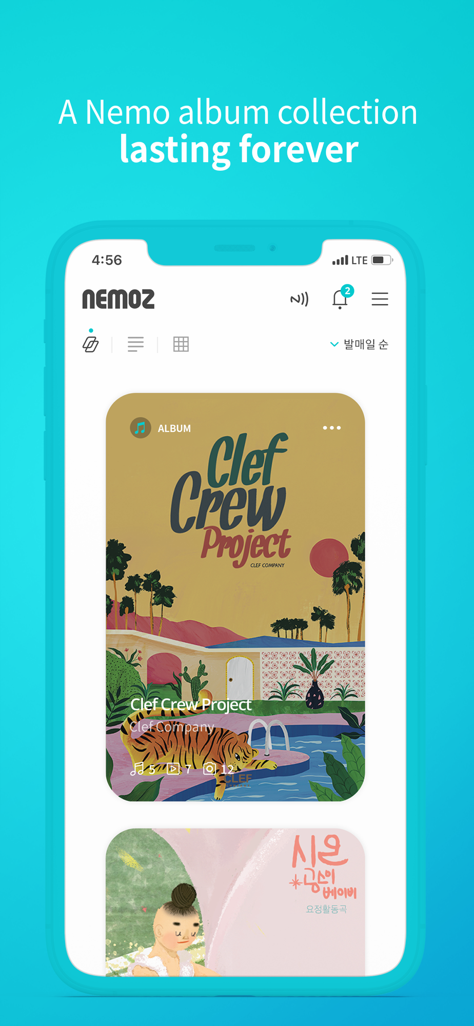 On the main page of the Nemoz App, you can swipe cards and see the albums activated on their account. We tried to give the sense of unity by designing every page in a card shape. Of course, you can align them in a single page to see all the albums you bought. In the world of Nemo album, you can enjoy various contents such as MUSIC, VIDEO, Gallery, AR and so on. All the contents are supported by 12 languages!