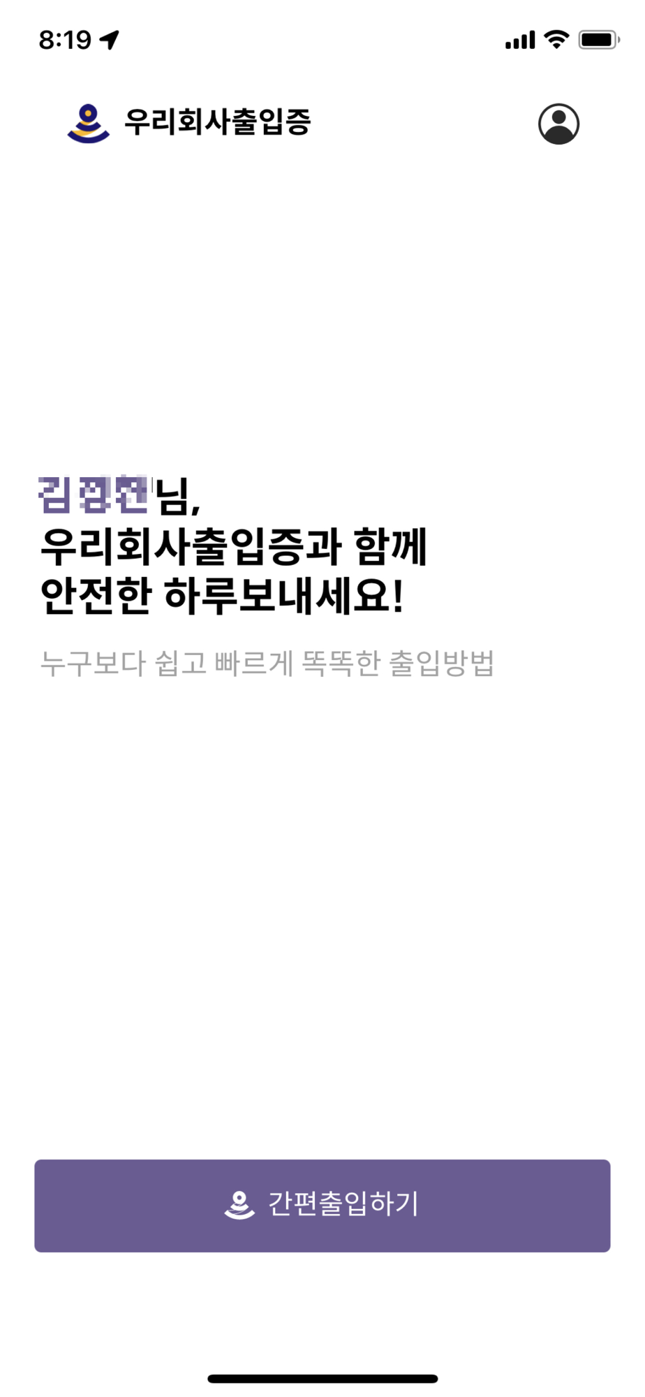 2. 메인 화면에서 간편출입하기 버튼을 선택합니다.