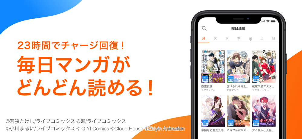 毎週更新される連載まんがを、全ての曜日で配信中!