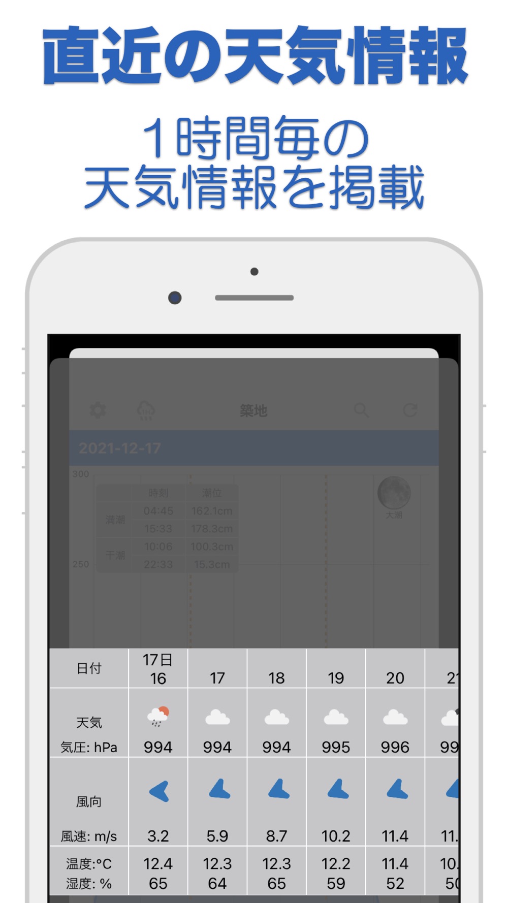 潮汐・潮位の情報を素早く確認し、満潮・干潮等の情報も確認することができます。