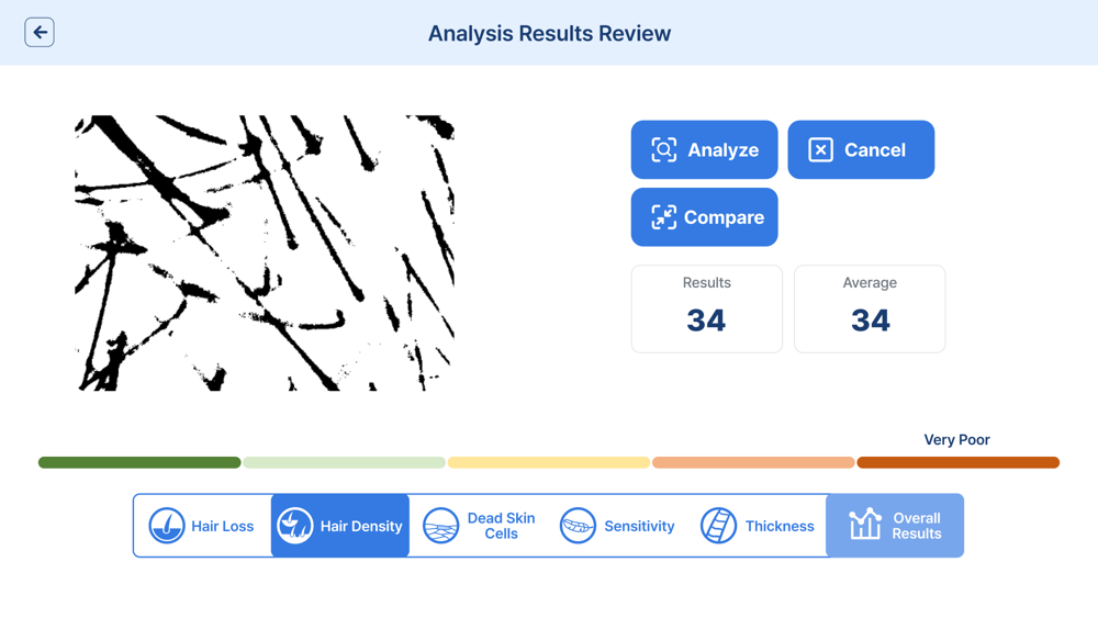 DermoBella Hair 2 New offers the latest professional hair mobile analysis measuring scalp hydration, sebum, hair loss, hair density, dead skin cells and hair thickness. With big data, accuracy of analysis is greatly enhanced and improved. The application comes with a complete CRM feature and an option to do a quick diagnosis with results history and tracking, images comparison and results sending. With its user –friendly UI, it allows users to navigate through the app smoothly and efficiently. Paired with Chowis hair analyzer, this application makes the perfect tool for consultants.