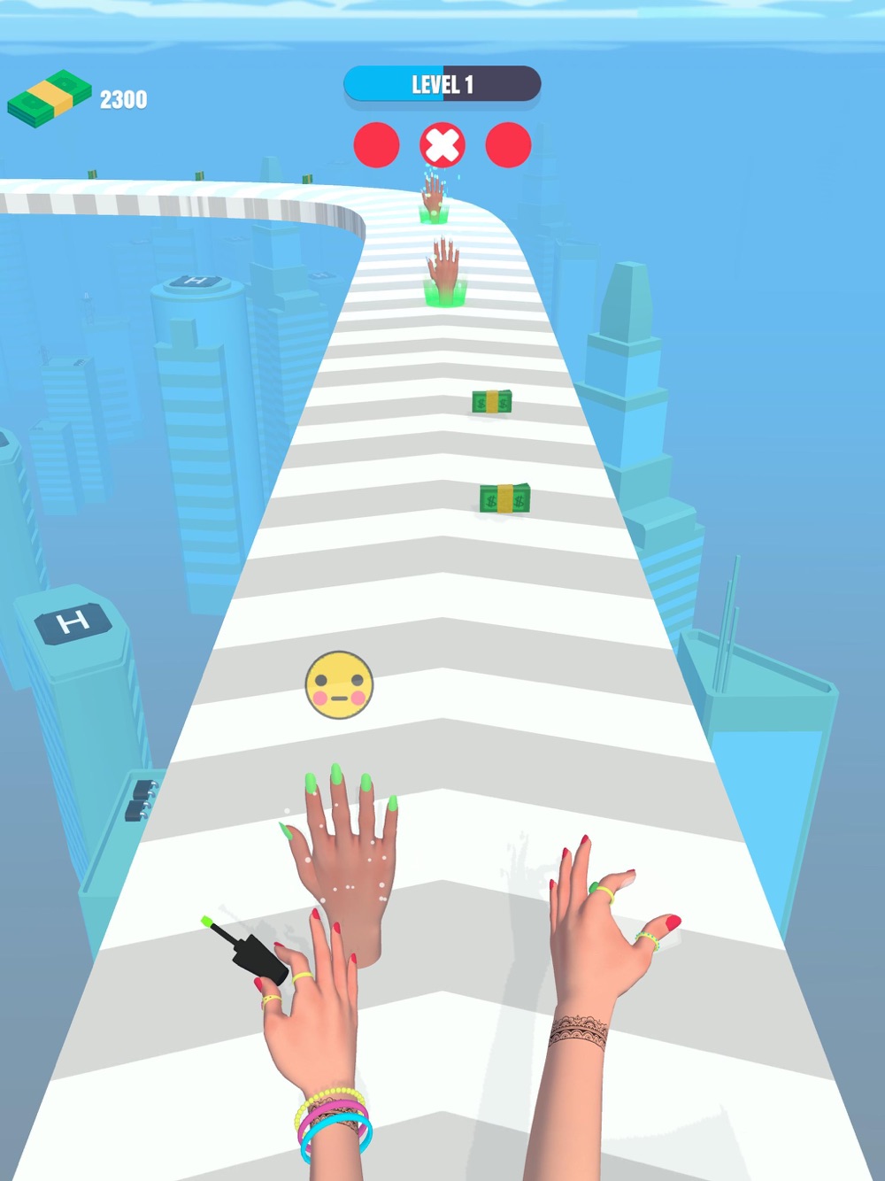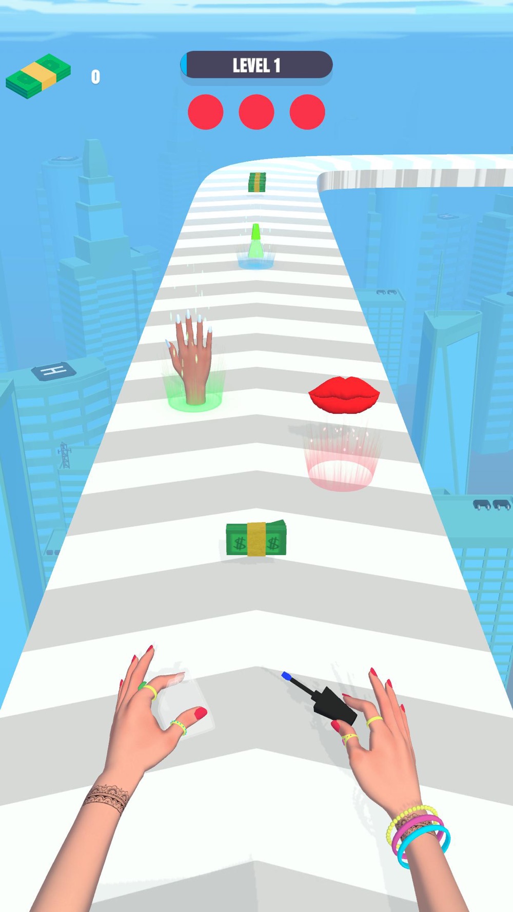 Move the hands on the way and polish all the fingers you see. Beware of red lips because it's ridiculous trying to polish a lip, isn't it?