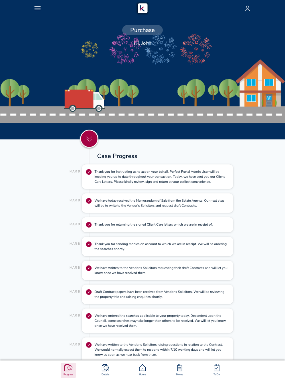 Information is updated whenever a task is completed by us, saving you unnecessary time spent on phone calls and emails. The app will even send you notifications when a task has been updated, to make sure you’ve always got up to the minute information.
