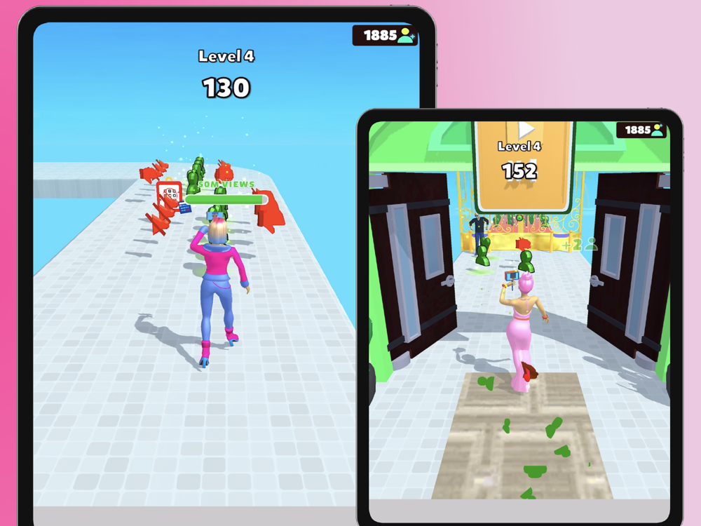 Complete the track and collect as many popular items as possible to become liked and followed by! You will also face gates with life changing options, each will determine how popular you’ll get.
