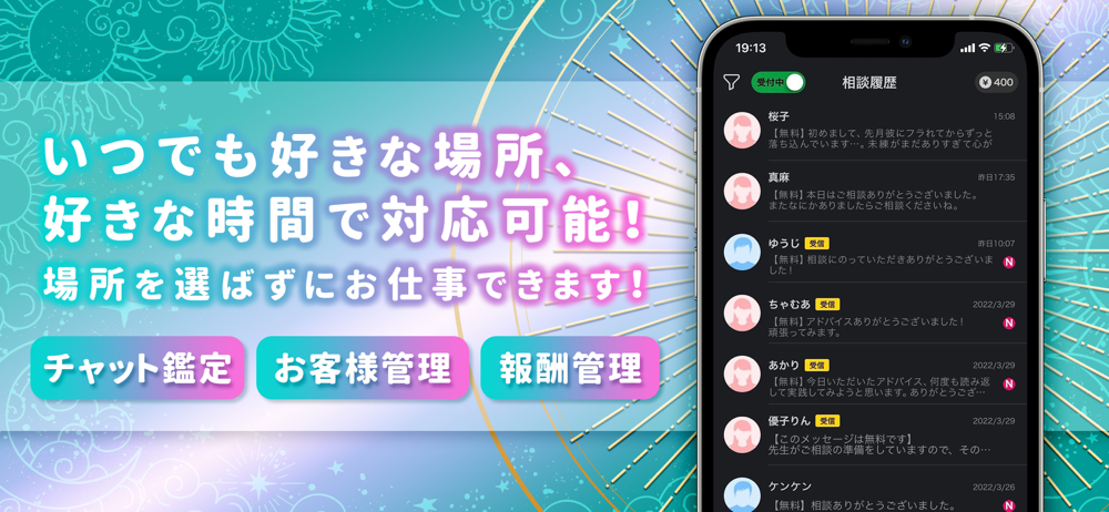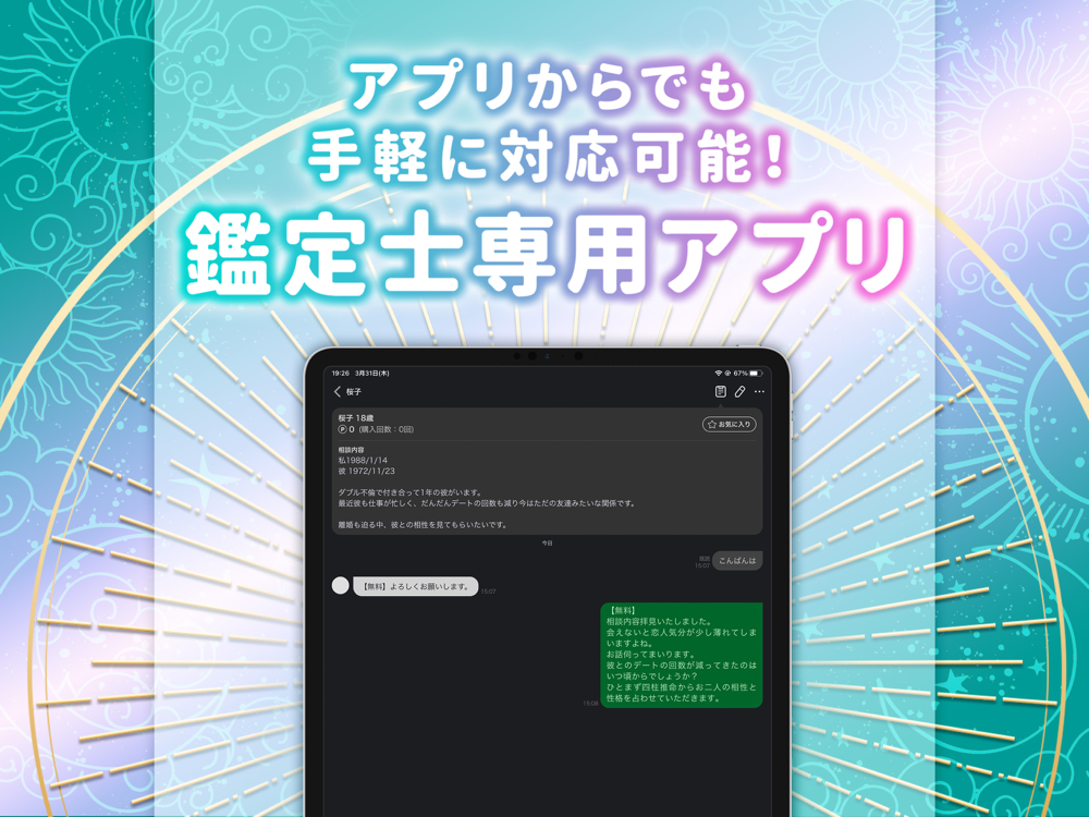 このアプリは、恋愛・復縁相談アプリ「urano(ウラーノ)」の鑑定士用アプリです。