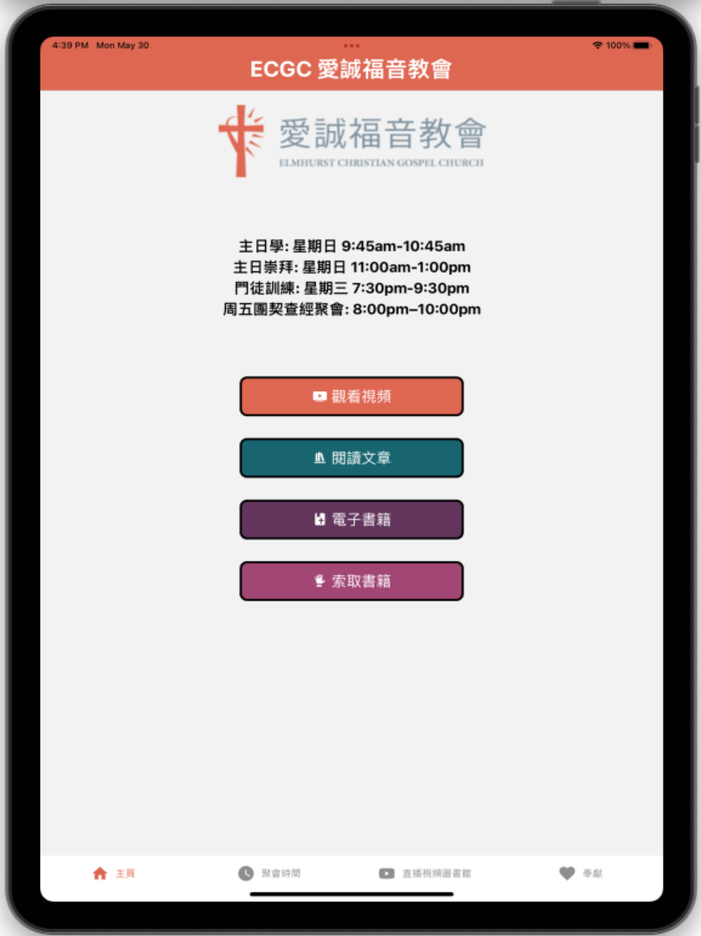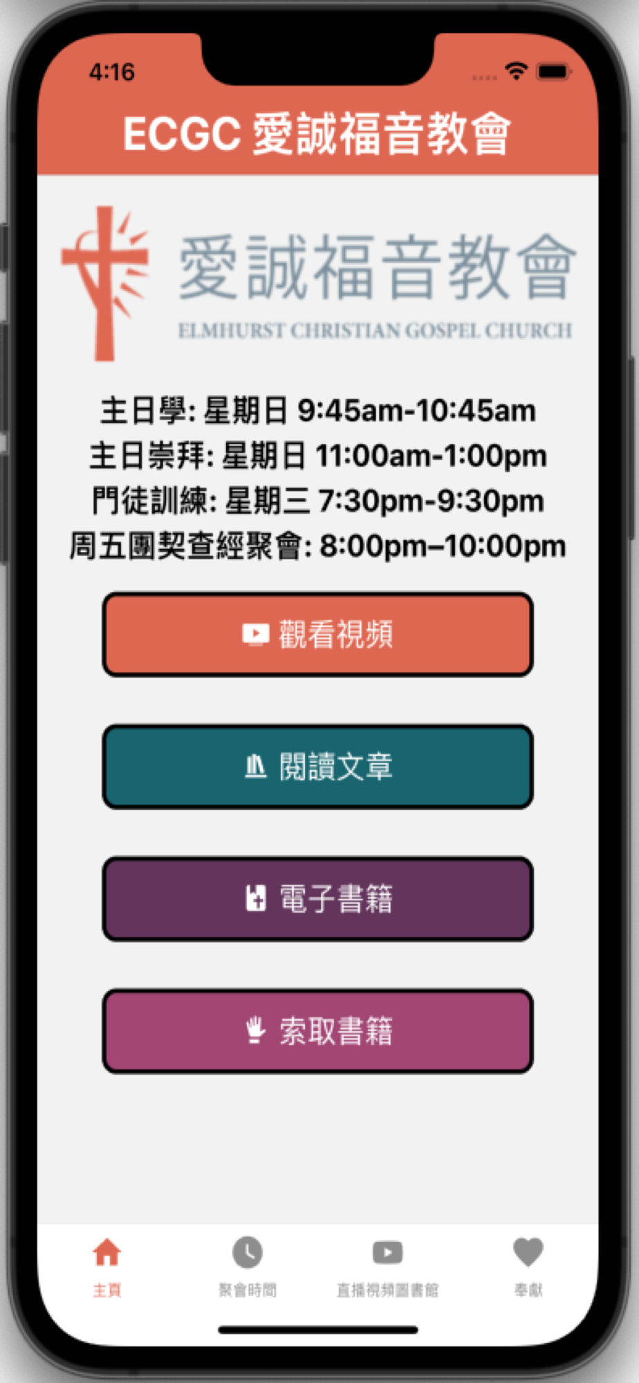 Elmhurst Christian Gospel Church app provides church related information to the ECGC church members: