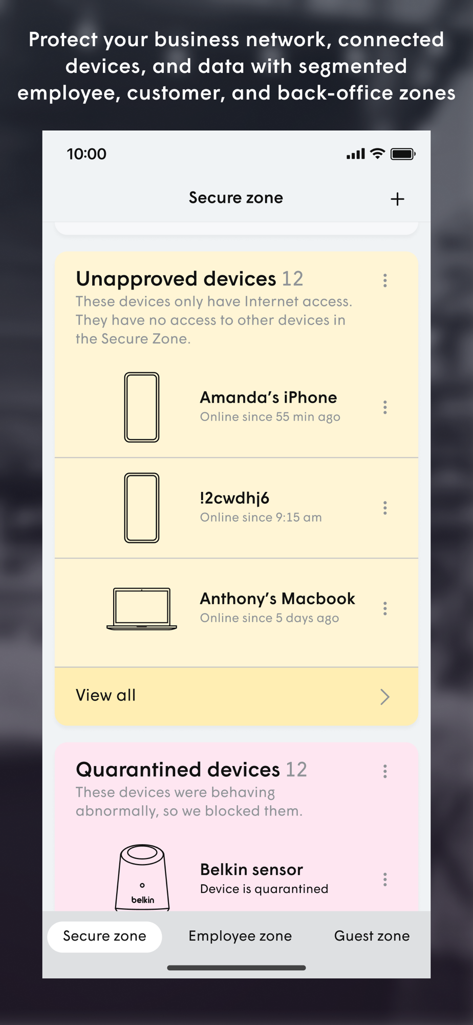 Protect your business network, connected devices, and data with segmented employee, customer, and back-office zones. Using advanced, AI-powered security features, Shield effectively filters threats and keeps you protected against cyber-attacks.