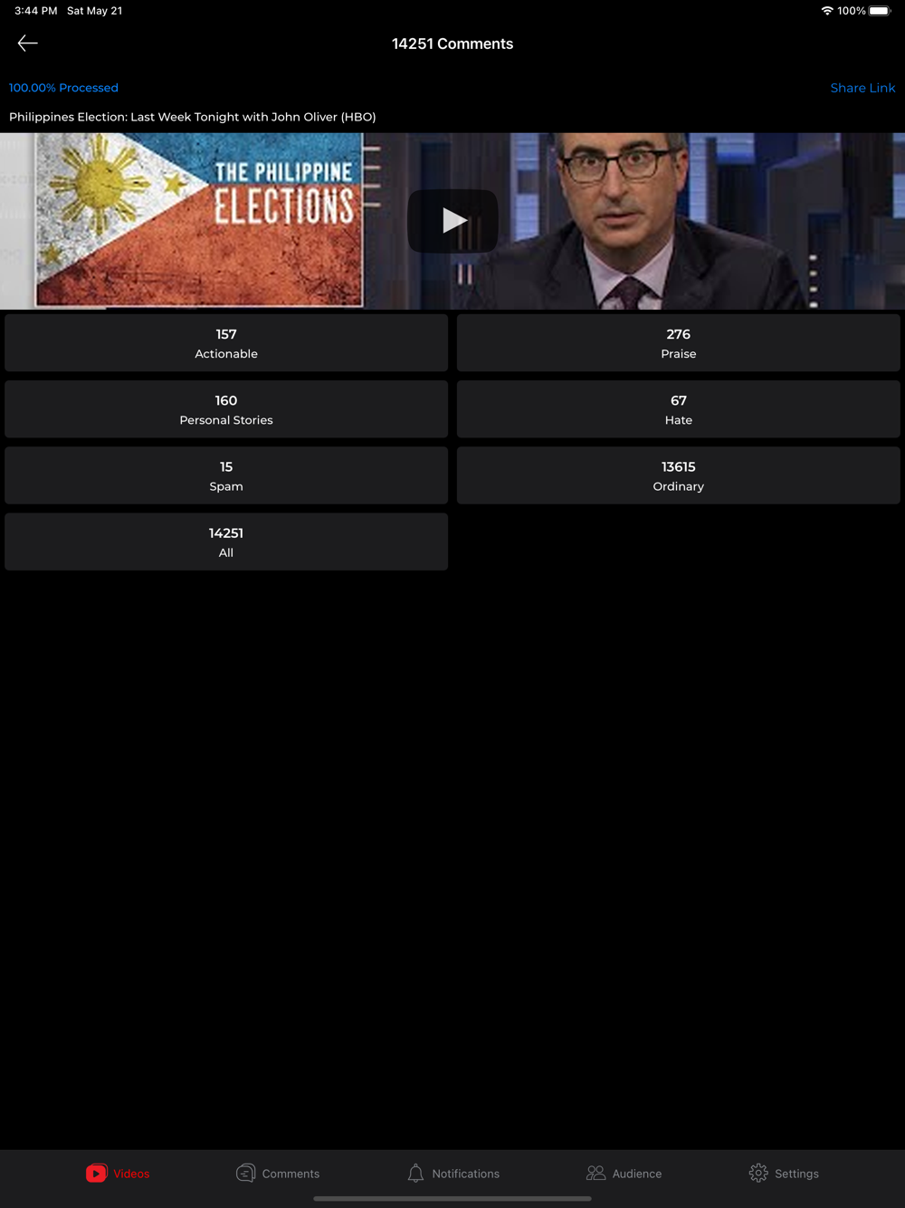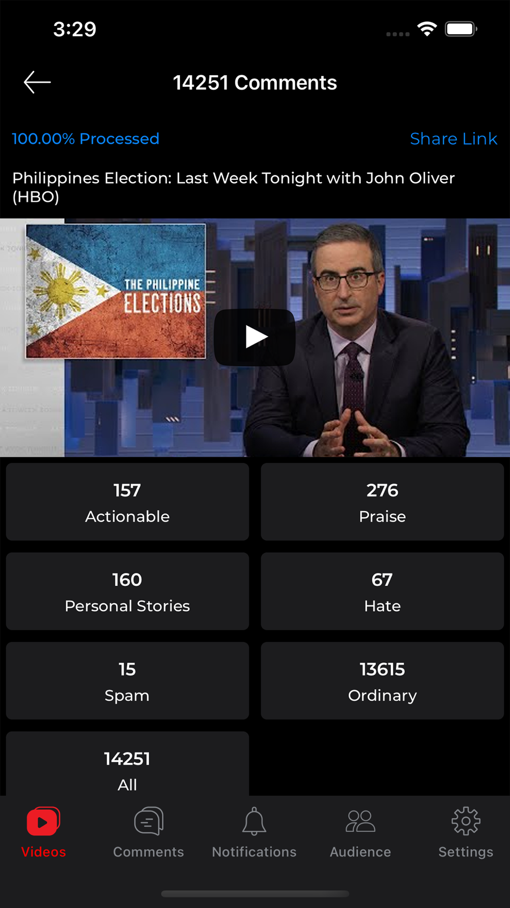 By using the app, you will be able to segment and address the comments that you receive on YouTube via key categories such as: