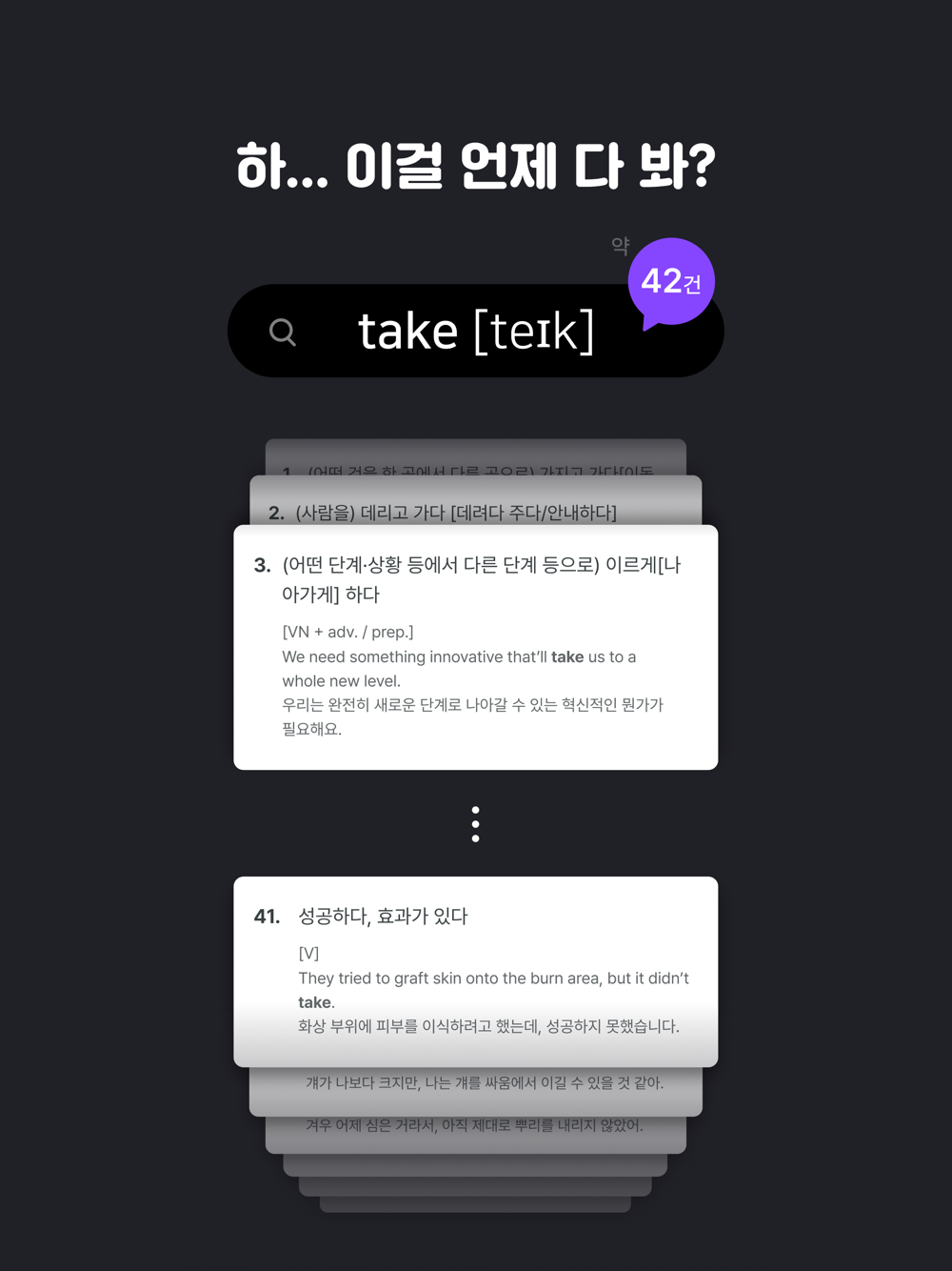 영어단어는 한 단어에 여러 개의 뜻이 있어요. 적게는 2~3개부터 많게는 50개까지 있는 경우도 있죠.