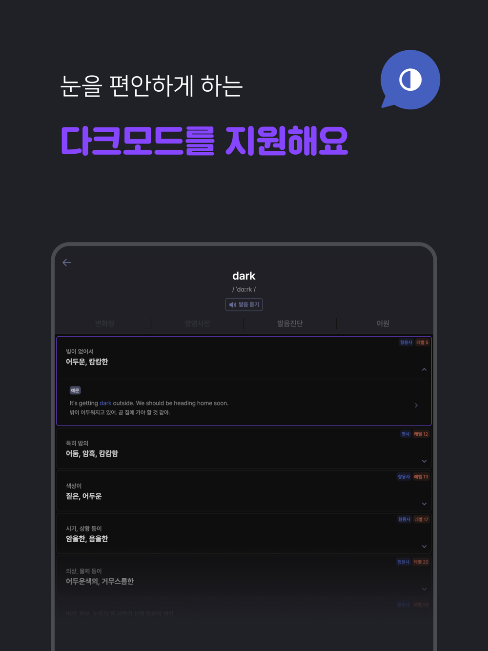 AI가 문장을 분석해서 문맥에 맞게 단어 뜻을 알려주는 말해보카 영어사전을 사용해 보세요.
