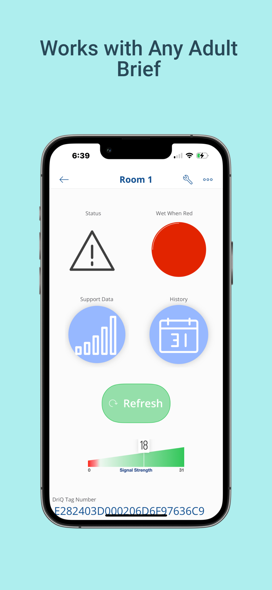 DriQ Health is a battery free solution for detecting urinary incontinence in Senior living. This works with all adult briefs and provides real time notifications using in-app notifications, text messaging, as well as email. Our solution requires the use of DriQ hardware and sensors and can improve the well being of all seniors requiring incontinence monitoring