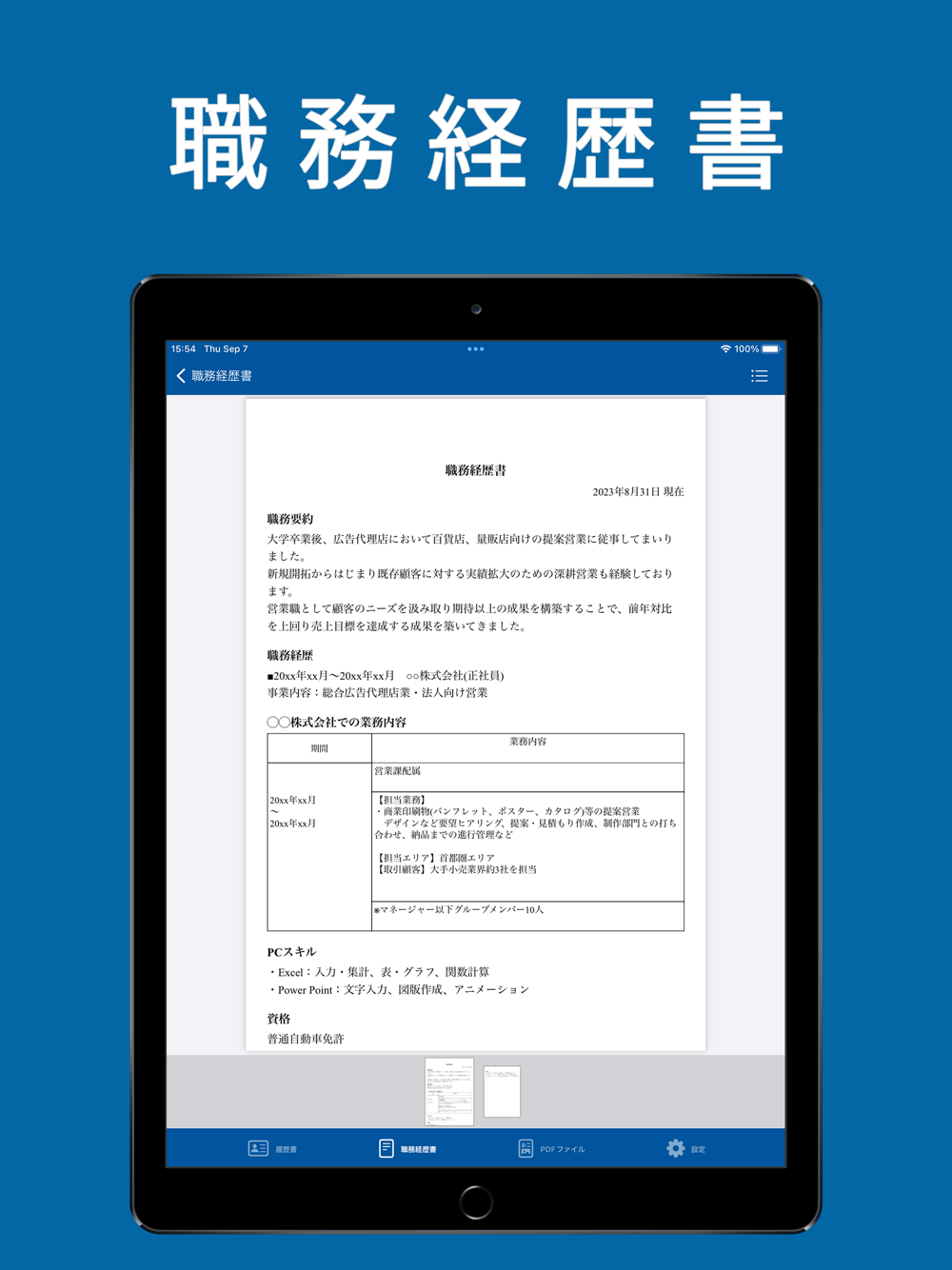 シンプルな職務経歴書の作成も可能です。