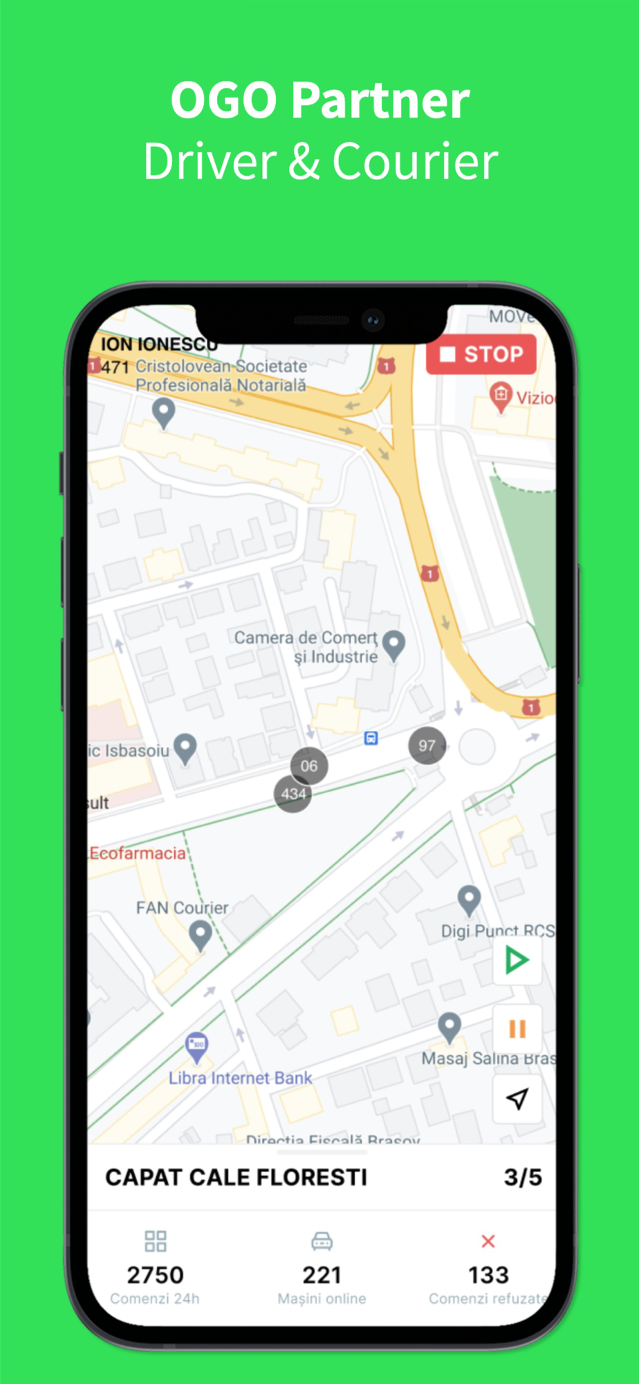 Aplicație destinată partenerilor OGO, pentru procesarea comenzilor online și din dispecerat. Preluare comenzi din apropiere sau după timpul din stand.
