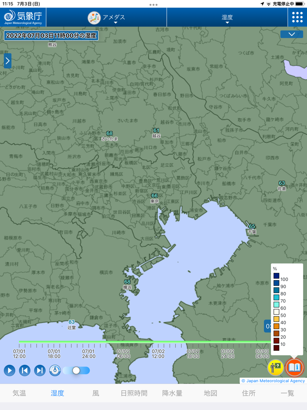 2.[湿度]は、観測地点の湿度です。湿度の単位は%です。