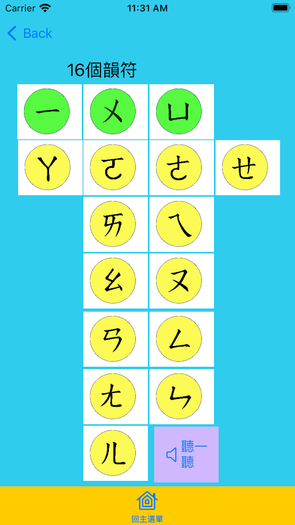 1.教導學生注音符號,了解21個聲符,16個韻符,五種聲調。