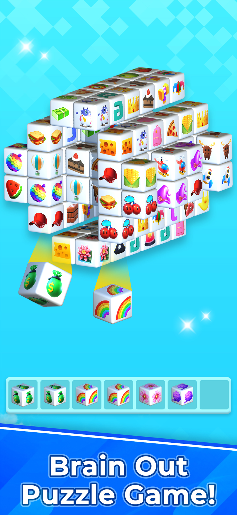 Cube Tile is a stylish match 3d puzzle game. You can swipe to rotate the cube match identical tiles to clear levels and use power to help you clear all tiles even more quickly. Tap and match triple tiles to progress to the next cube puzzle!