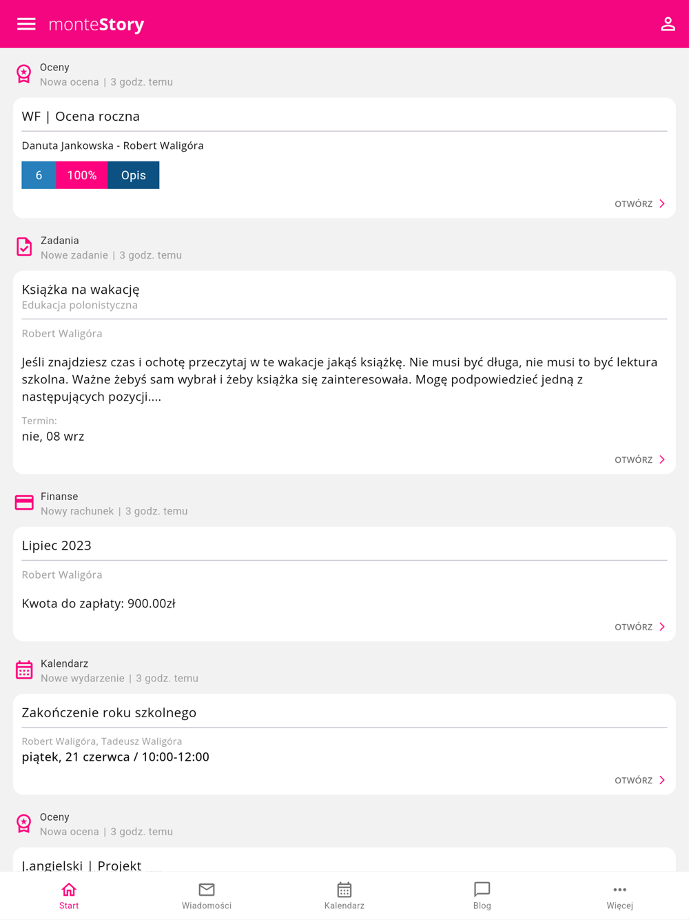 Aplikacja dla rodziców i uczniów placówek Montessori, korzystających z elektronicznego dziennika monteStory.