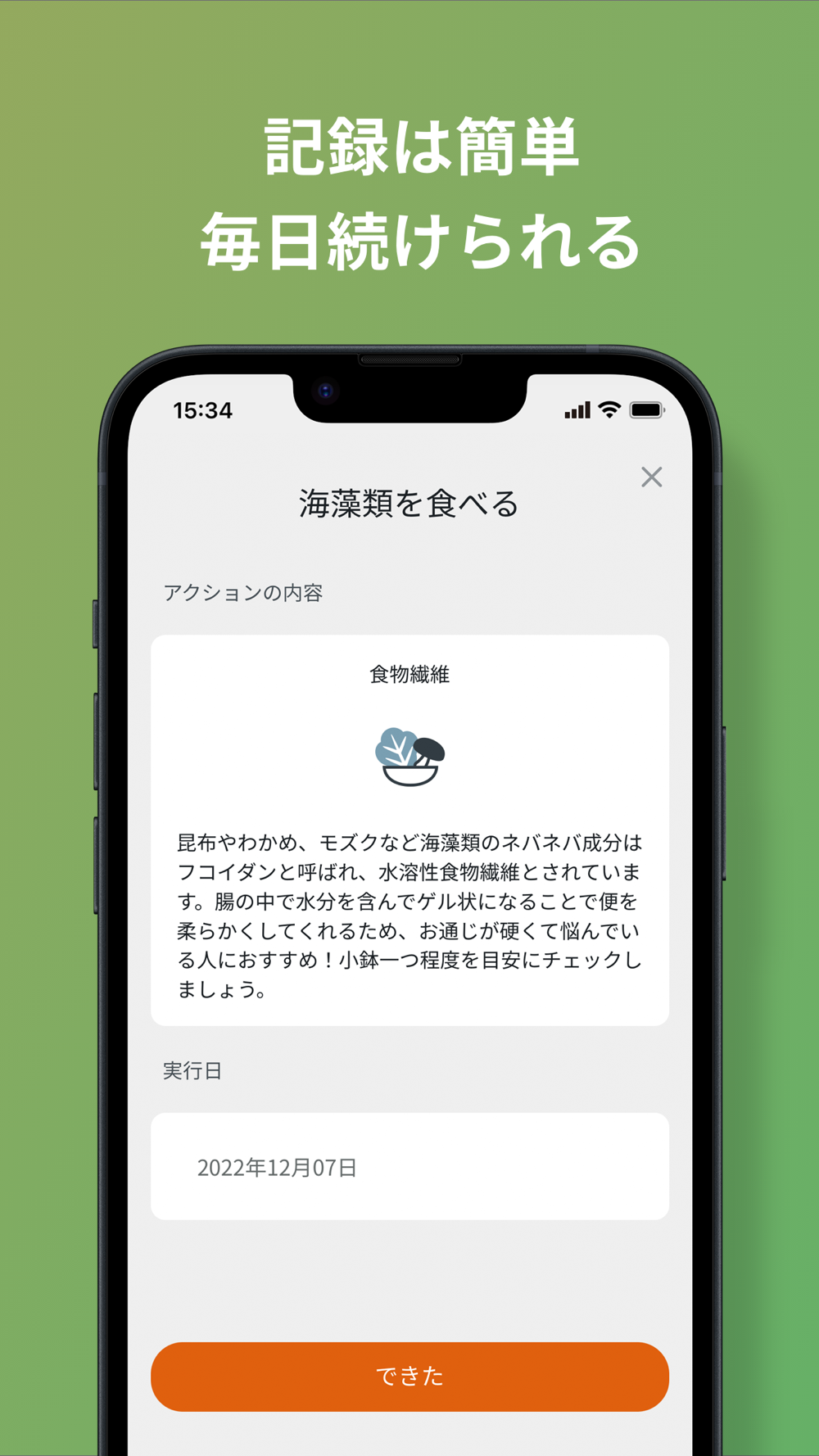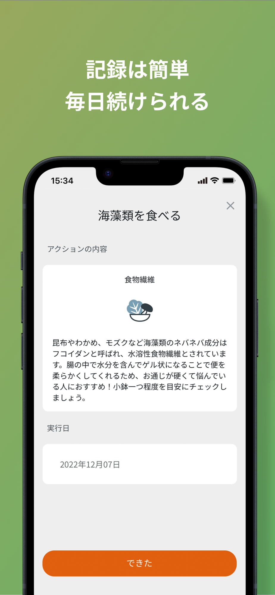 日々のお通じや腸活を毎日記録をつけることができます。あなただけの腸活リストを作って、自分のペースで自分だけの腸活を進めよう。