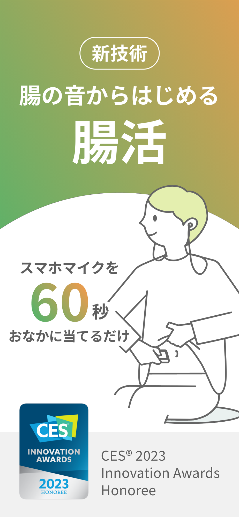 本アプリは、腸音の記録に基づくヘルスケアアプリです。医療機器および医療プログラムではなく、疾病の治療、診断、予防を目的としたものではありません。必要に応じて医療機関を受診することをおすすめいたします。