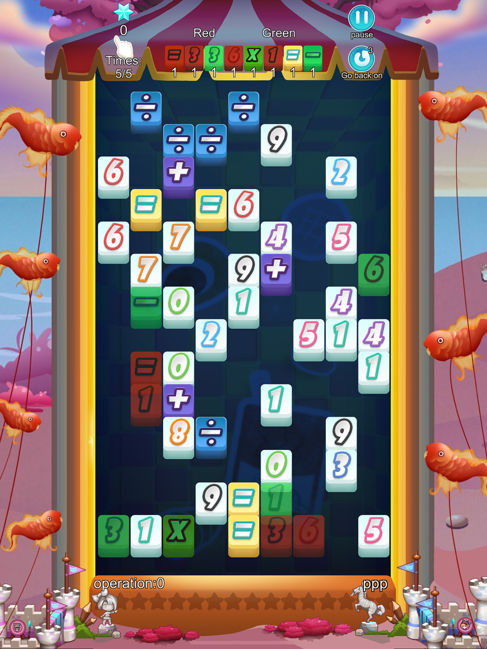 *This game combines arithmetic and judging to choose a combination of gameplay, form an equation to eliminate numbers and symbols, and complete the elimination goal. The red blocks in the game cannot be moved.
