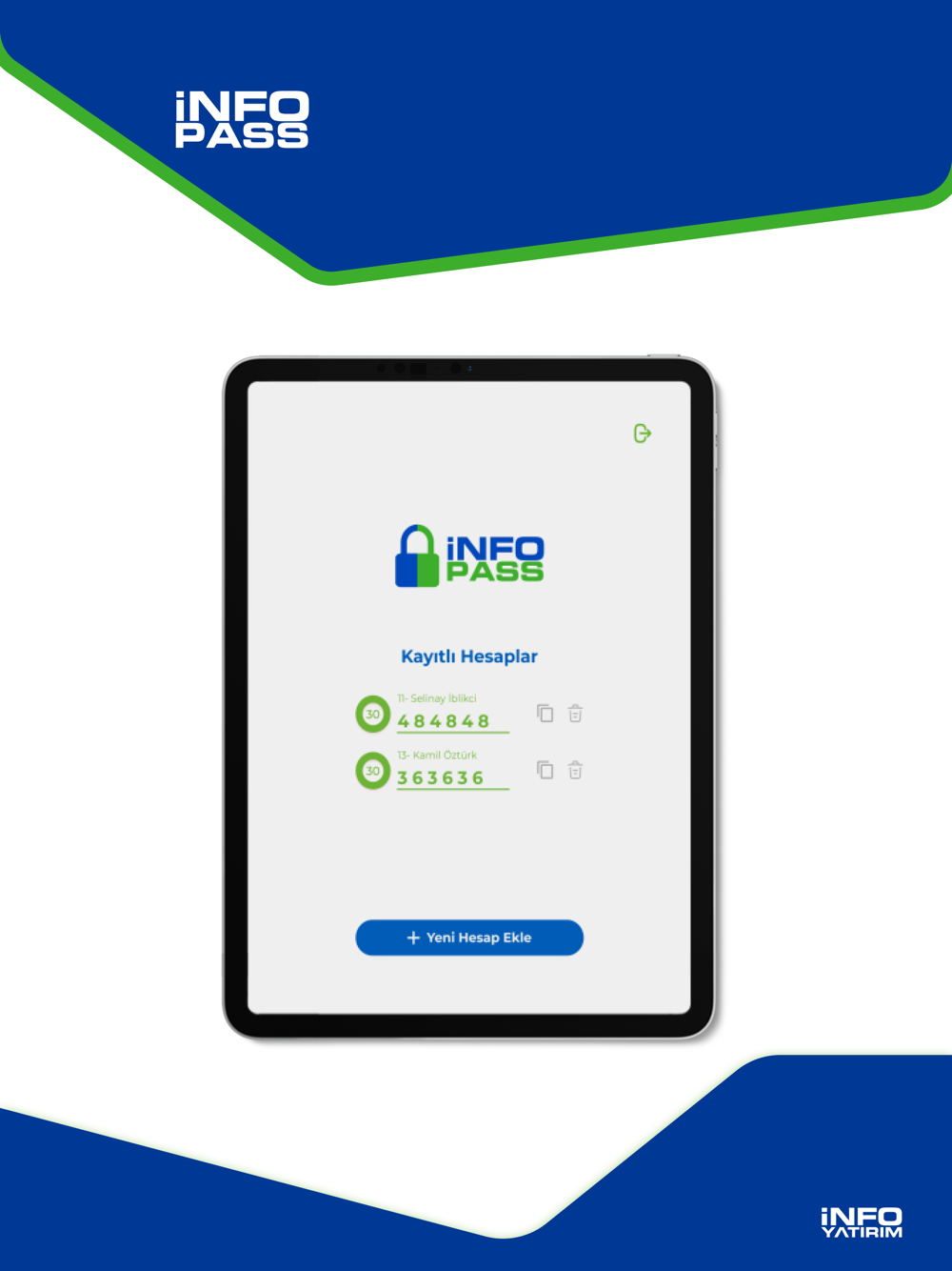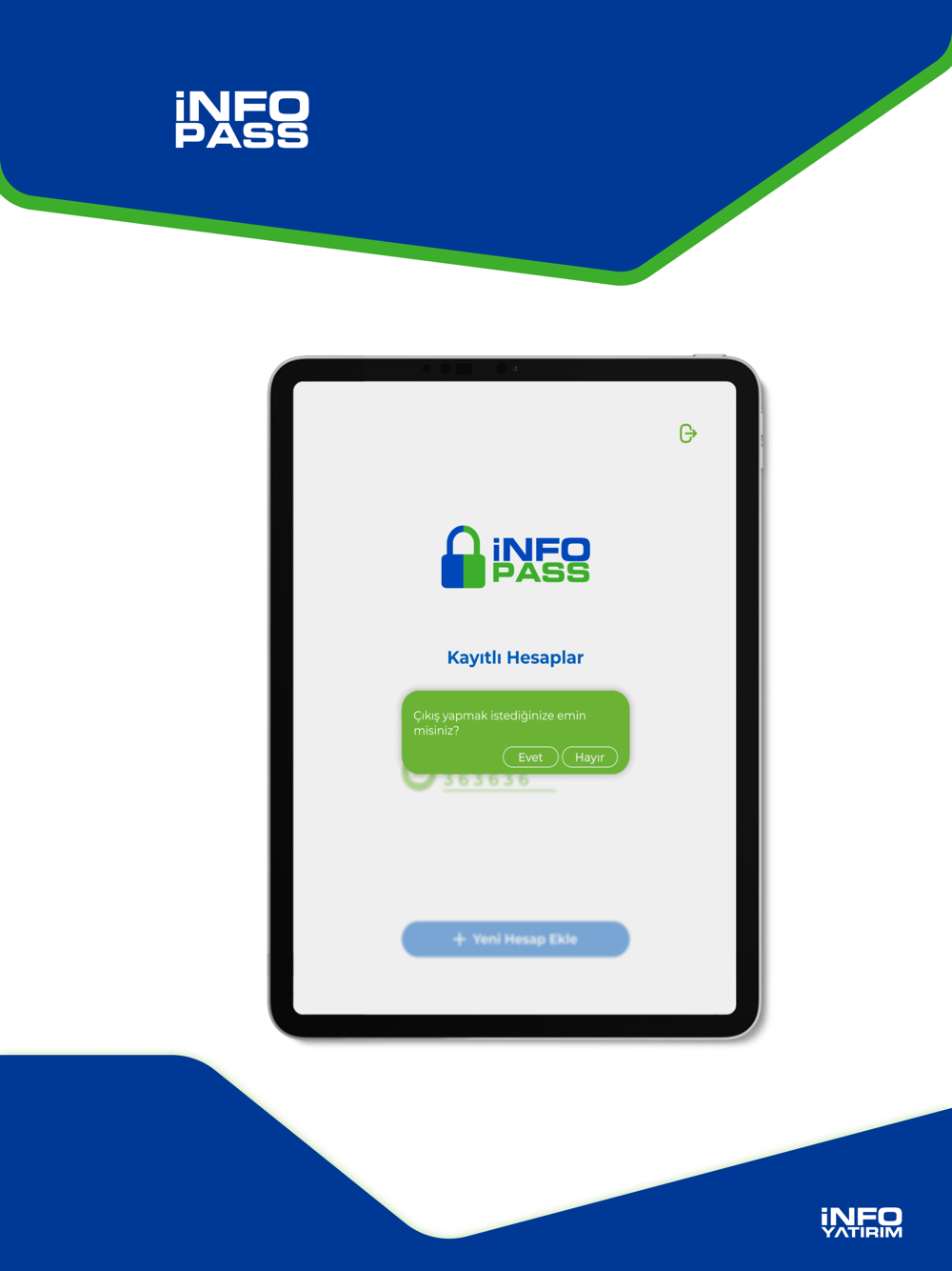Şifrenize ek olarak telefonunuzdaki Info Pass uygulaması tarafından oluşturulan kod ile hesabınıza daha güvenli ve hızlı erişebilirsiniz.