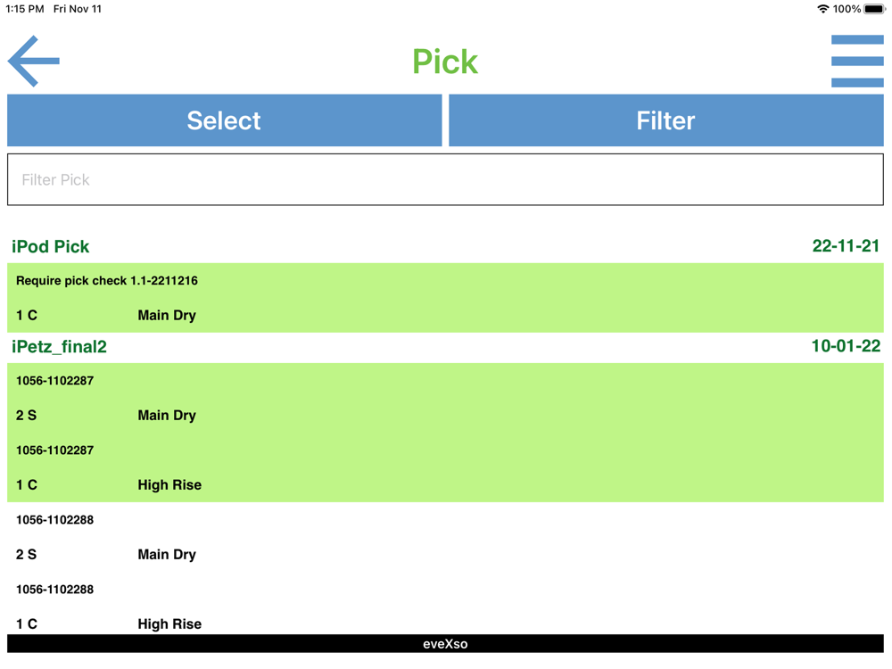 The eveXso iOS app is useful for paperless warehouse management. This uses iOS devices like iPod/iPhone and also uses Linea Pro scanners connected with these devices for scanning the inventory, location, pack etc barcodes. It's faster, easier and smarter to use. It involves the functionalities like receiving, picking, loading and delivering goods. Also provides stock checking the goods